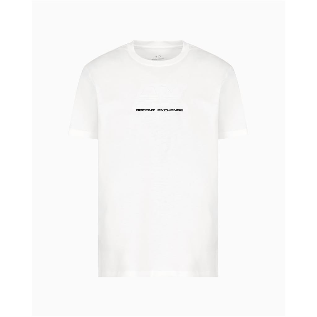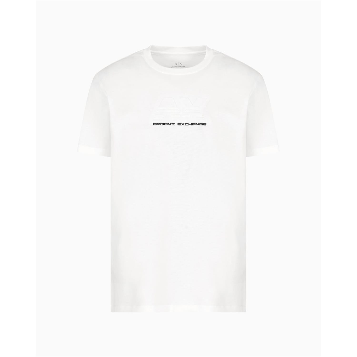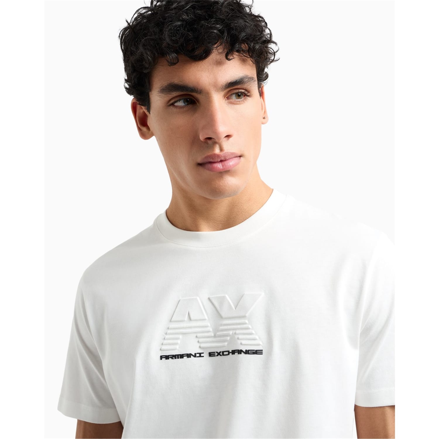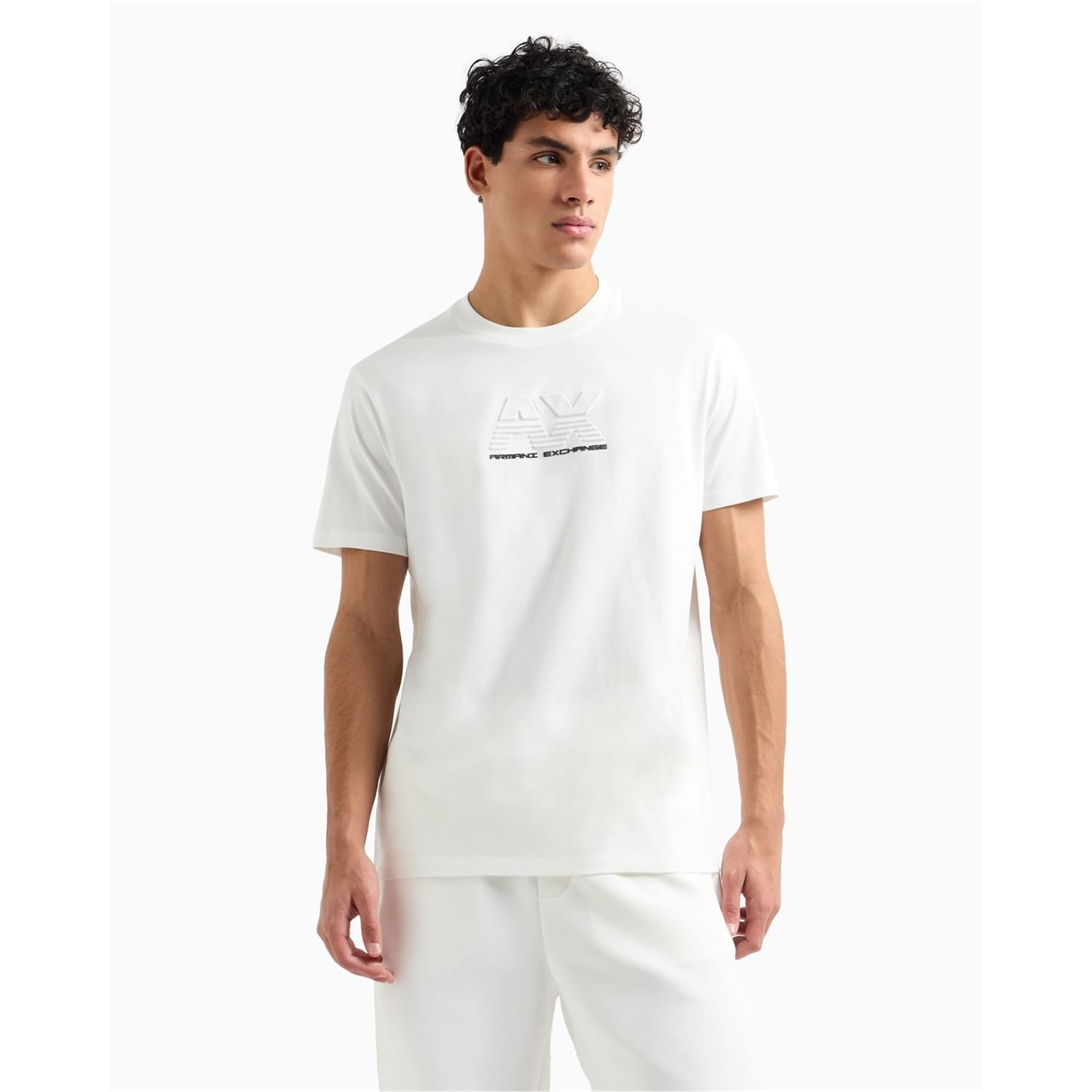 This Armani Exchange top is a casual essential, featuring a regular fit and a solid pattern. The short sleeves and crew neck design offer a classic look, while the logo embellishment adds a touch of brand identity. -