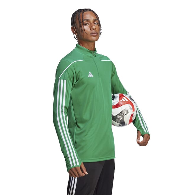 Born for the beautiful game. Part of the Tiro 23 League range, this football top has you covered when you need a push on the training field. Slim-fitting for speedy play, it has thumbholes that let you pull the long sleeves over your hands. As you'd expect from adidas, moisture-absorbing AEROREADY comes standard, so that extra coverage won't affect your comfort levels. -
