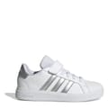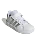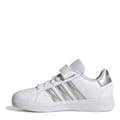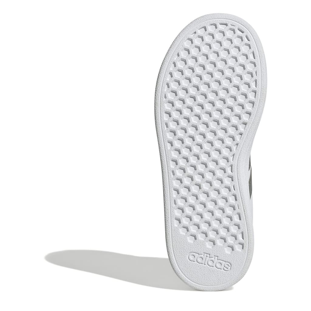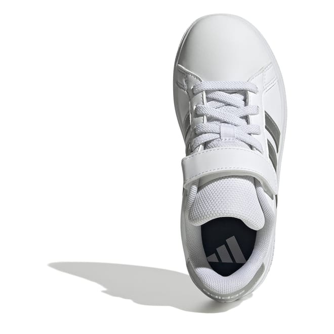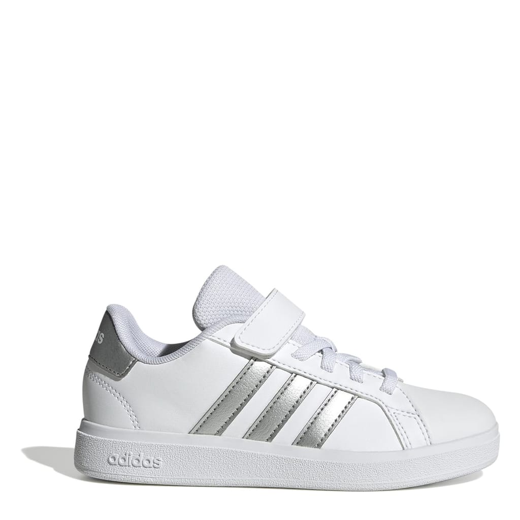 Hopping on a bike or heading to a party, these kids' adidas Grand Court 2.0 Trainers keep kids moving in classic, sporty style. The faux leather upper is lined for a soft feel and finished with the iconic 3-Stripes at the sides. A flexible rubber cupsole provides much-needed grip for on-the-go kids.