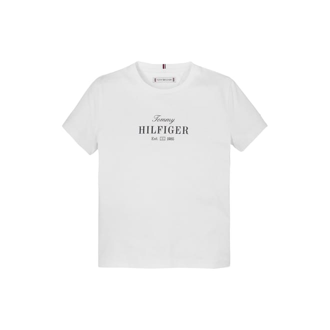 This Tommy Hilfiger top is a casual staple featuring a regular fit and short sleeves. The crew neck design is adorned with a graphic print and distinctive lettering, showcasing the brand's logo. Suitable for all seasons, this top effortlessly combines style and comfort. -
