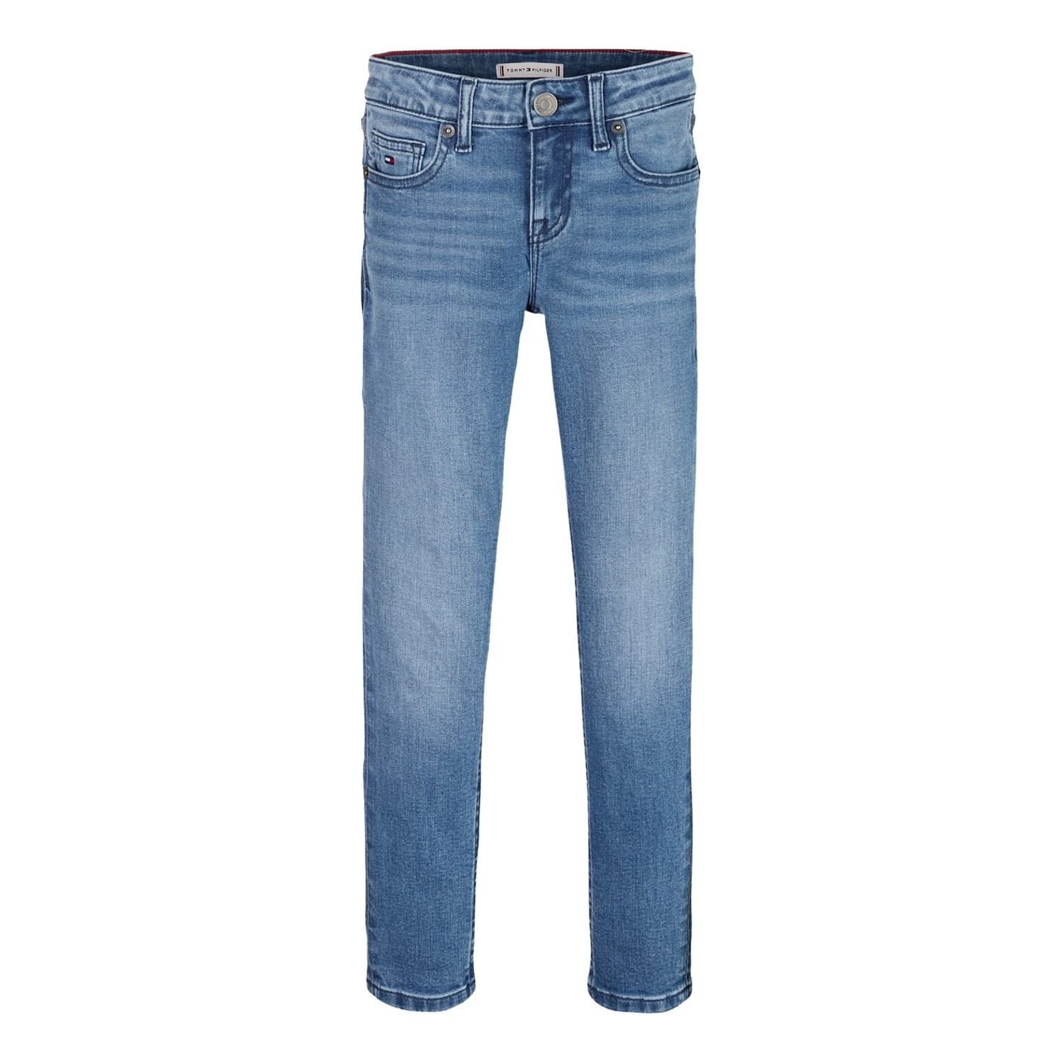 Tommy Hilfiger jeans feature a skinny fit and a classic five-pocket design. The zip fly and button closure ensure a secure fit, while the iconic logo adds a touch of brand recognition. These jeans are a versatile addition to any wardrobe, combining style and functionality effortlessly. -