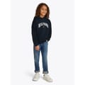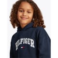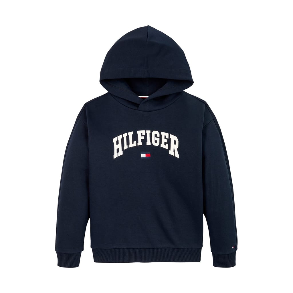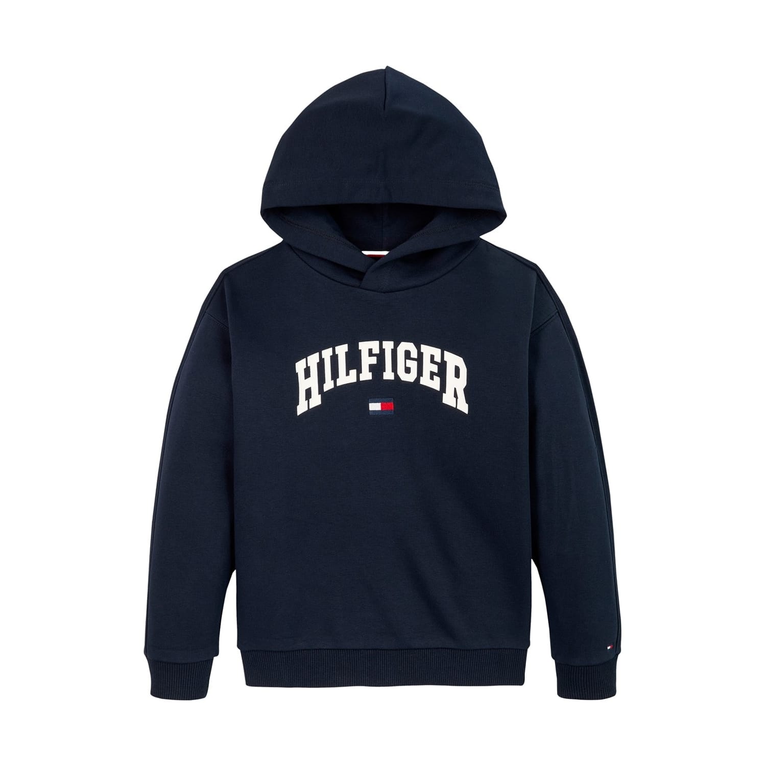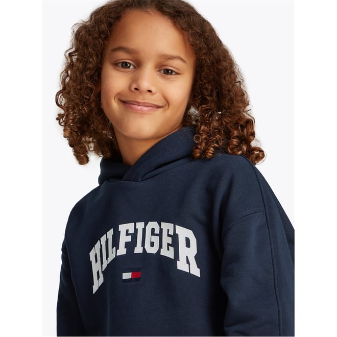 This Tommy Hilfiger varsity top features a hooded design with long raglan sleeves and a regular fit. The ribbed cuffs add a touch of style, while the graphic print and embroidered logo embellishments enhance its appeal. Suitable for all seasons, this top is a versatile addition to any wardrobe. -