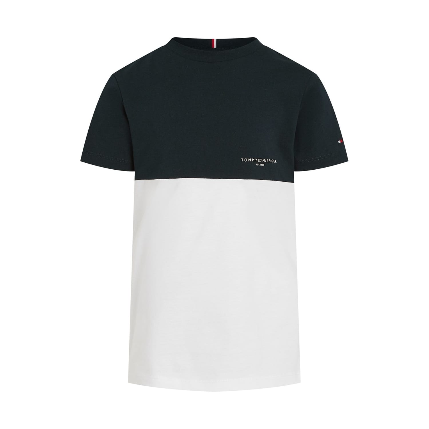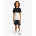 This Tommy Hilfiger top short set features a stylish color block design. The set includes a crew neck T-shirt with plain short sleeves and casual shorts, perfect for a relaxed look. The T-shirt is adorned with the iconic logo, adding a touch of brand identity. Ideal for casual collections, this set combines comfort and style effortlessly. -