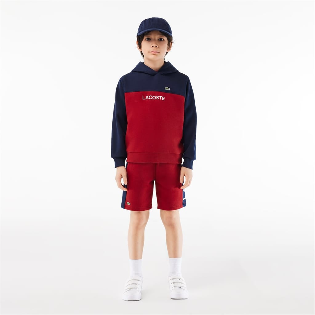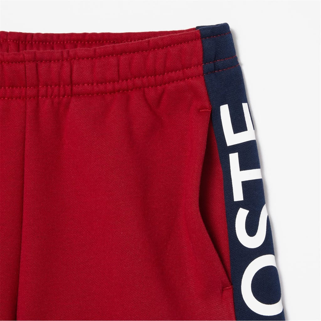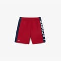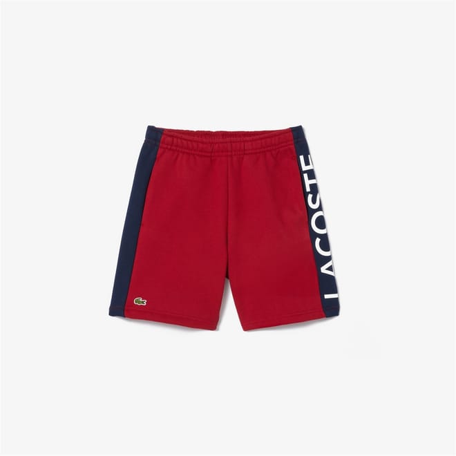 These Lacoste athletic shorts feature a striking color block pattern and Lacoste lettering graphic for a sporty appeal. The drawstring closure ensures a secure fit, while the iconic logo adds a touch of brand distinction. Perfect for active lifestyles, these shorts blend functionality with modern style. -