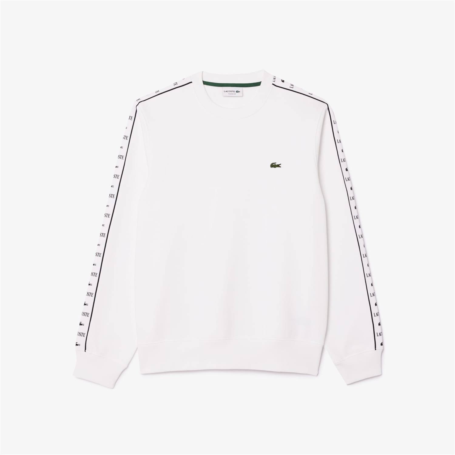 This Lacoste sweatshirt is a versatile addition to your wardrobe. Featuring a crew neck and long sleeves, it offers a regular fit for comfortable wear. The solid pattern and Lacoste lettering logo add a stylish touch, while the ribbed cuffs ensure a snug fit. -
