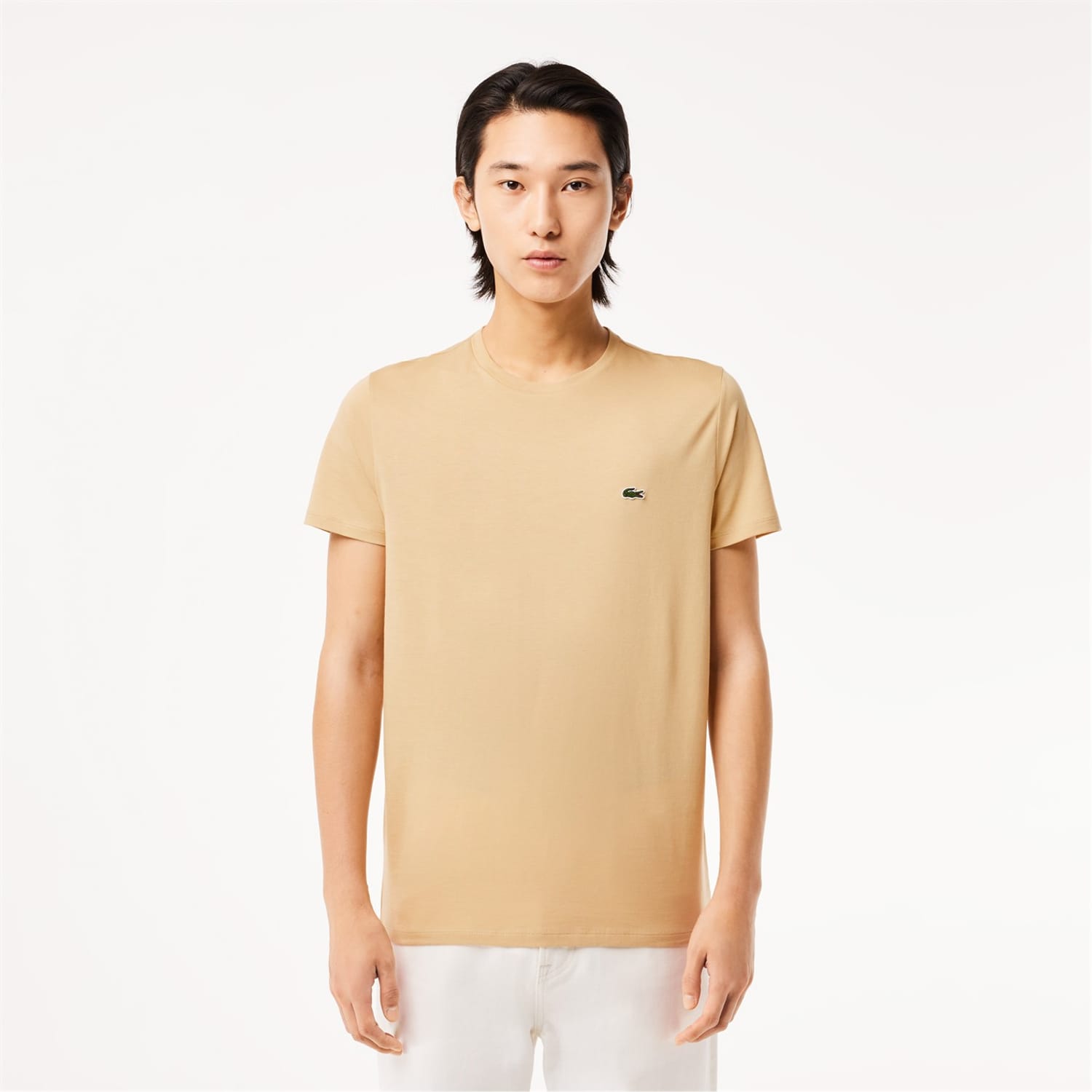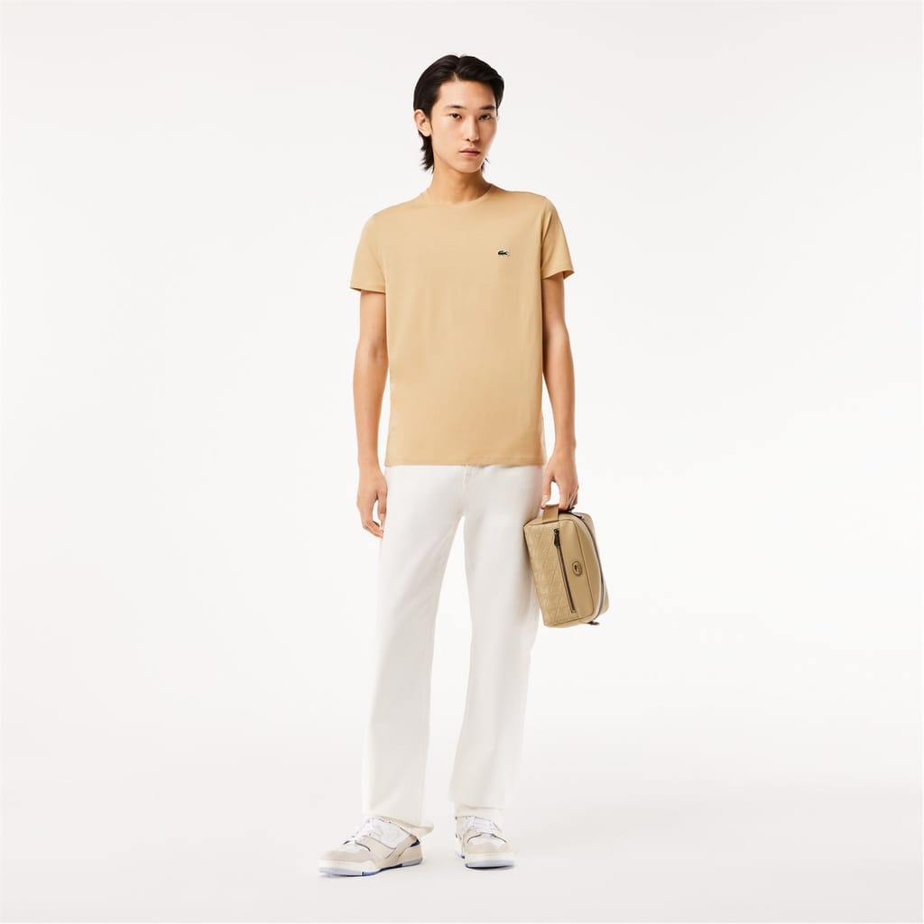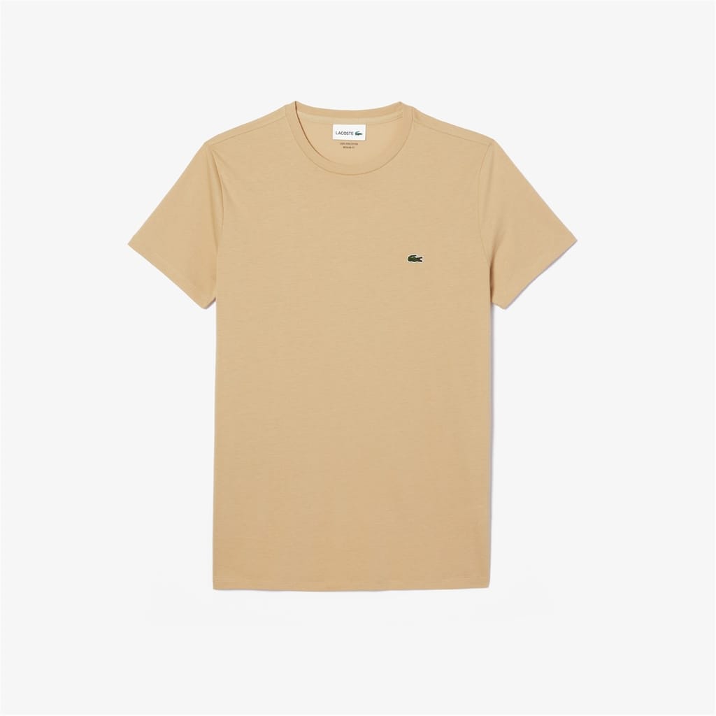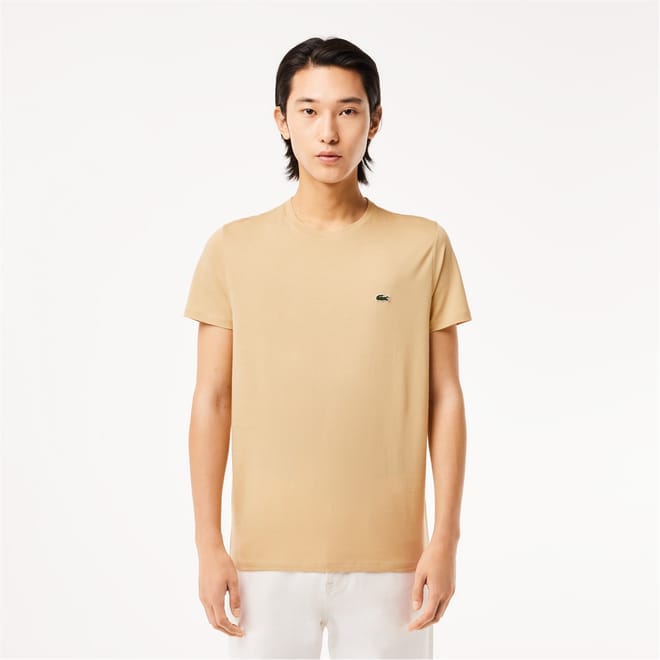 This Lacoste t-shirt features a classic crew neck and short sleeves, offering a regular fit for everyday comfort. The solid pattern and subtle logo embellishment add a touch of sophistication to this versatile top. -