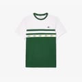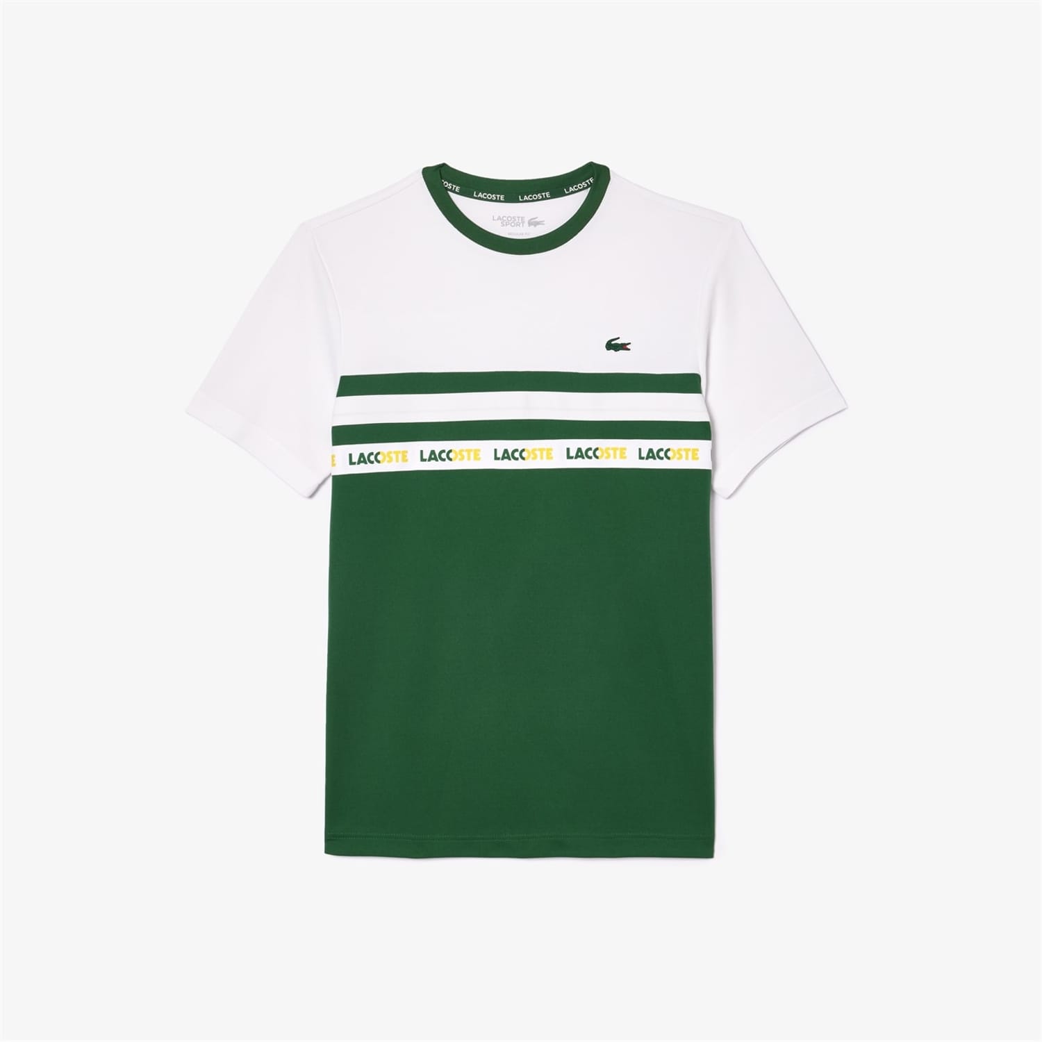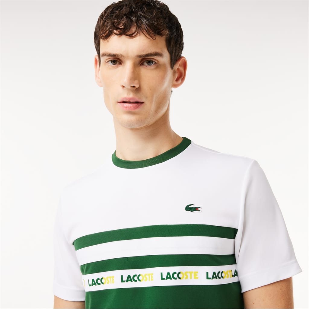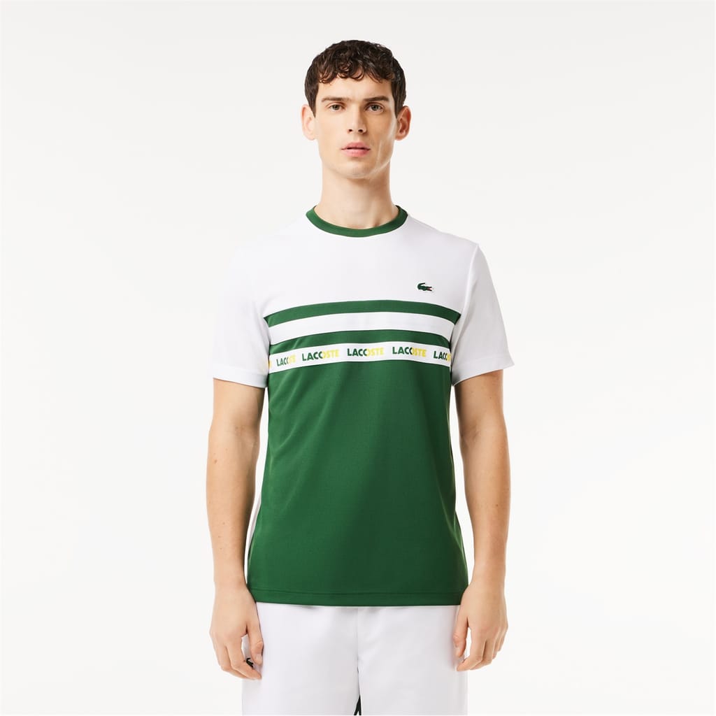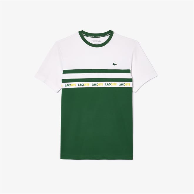 This Lacoste t-shirt is perfect for casual wear. Featuring a regular fit and short sleeves, it offers comfort and style. The crew neck design and color block pattern add a modern touch. Finished with the iconic Lacoste logo, this top is a must-have for your wardrobe. -