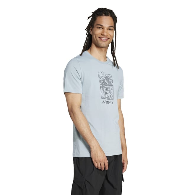 Refresh your wardrobe with adidas' Terrex Graphic T-Shirt. Complete with the signature 3 bar logo showcasing a symbol of sporty style and performance, and a graphic print offering a visual appeal. From leisurely strolls to workout sessions, this top is the perfect companion.