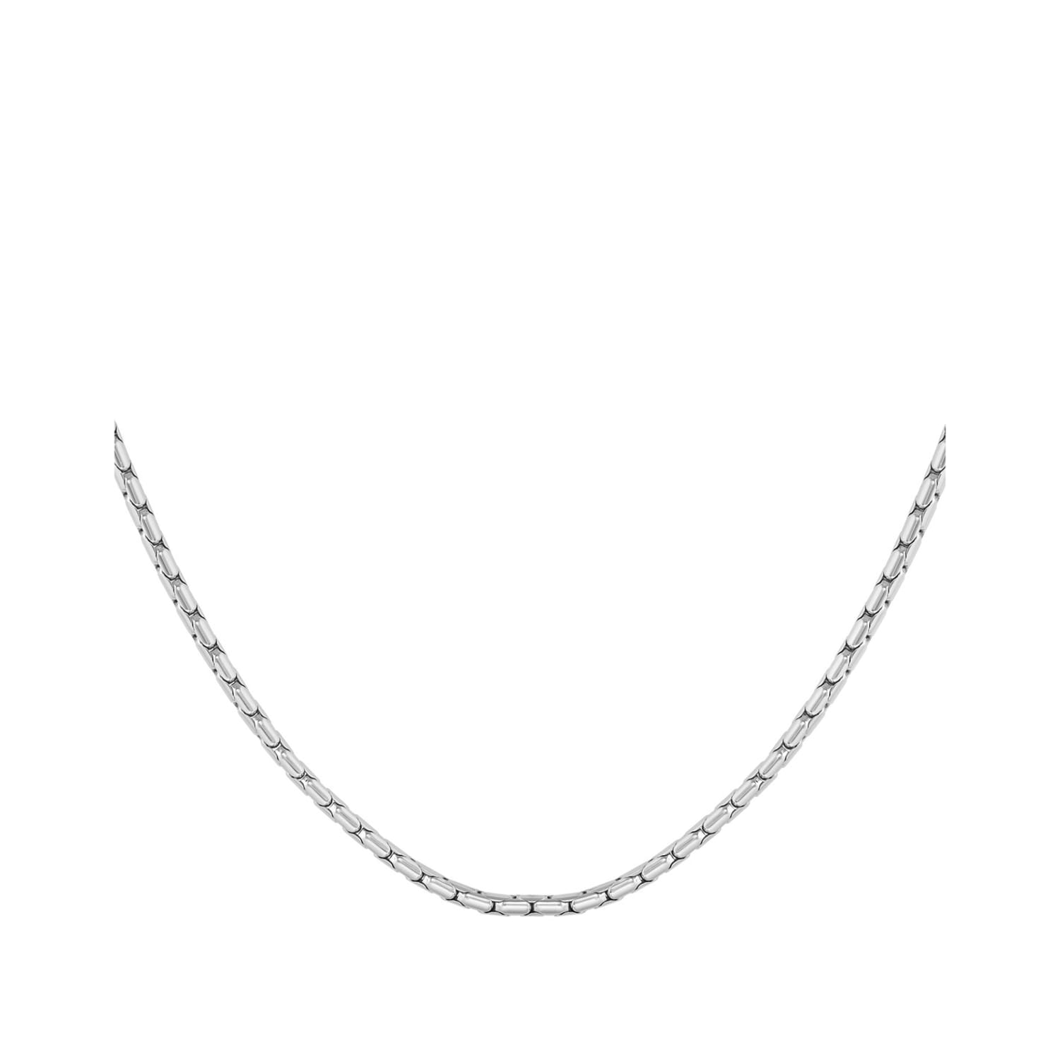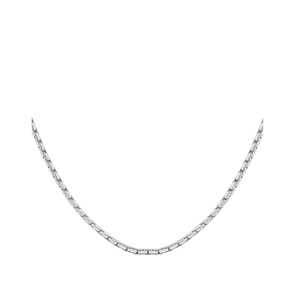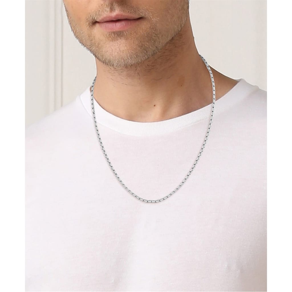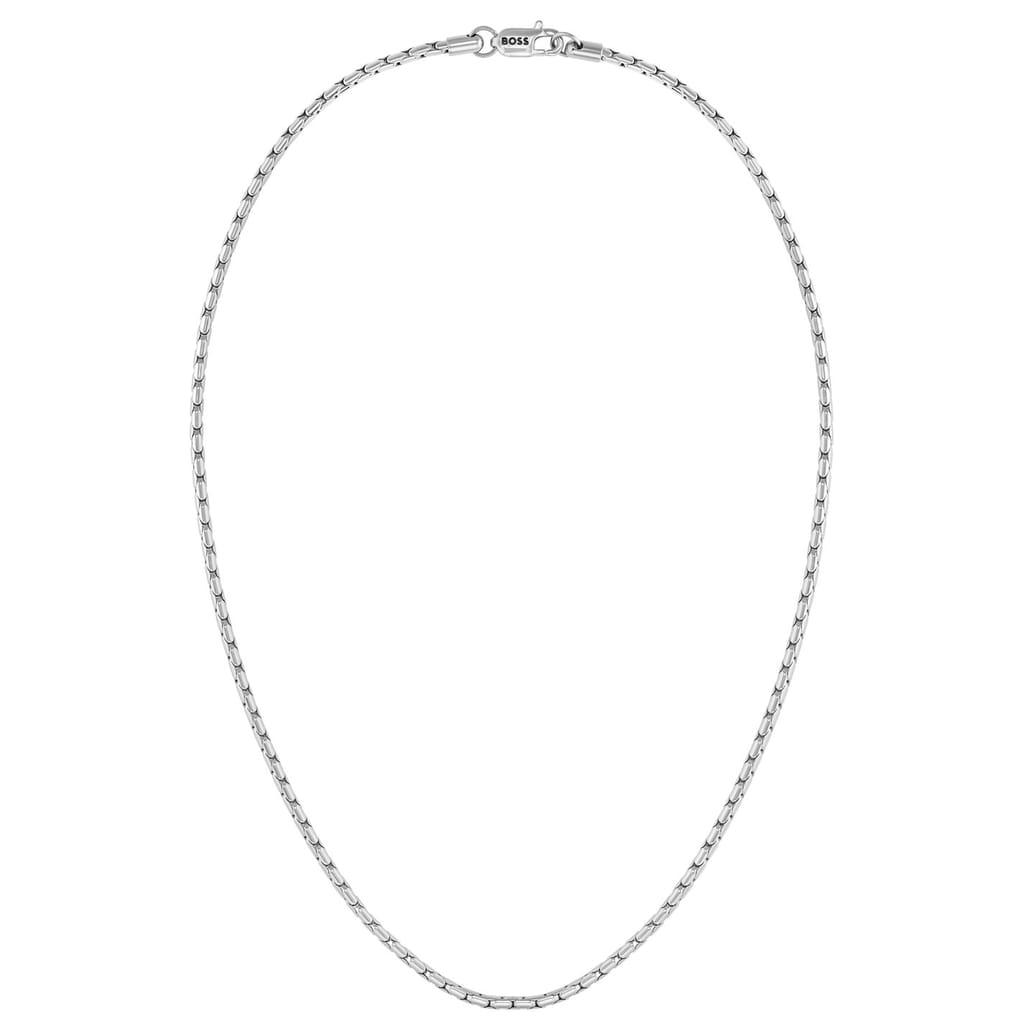 BOSS gents necklace from the Evan collection. Featuring a stainless steel chain with BOSS black ink branded lobster clasp closure. Length 560 mm
