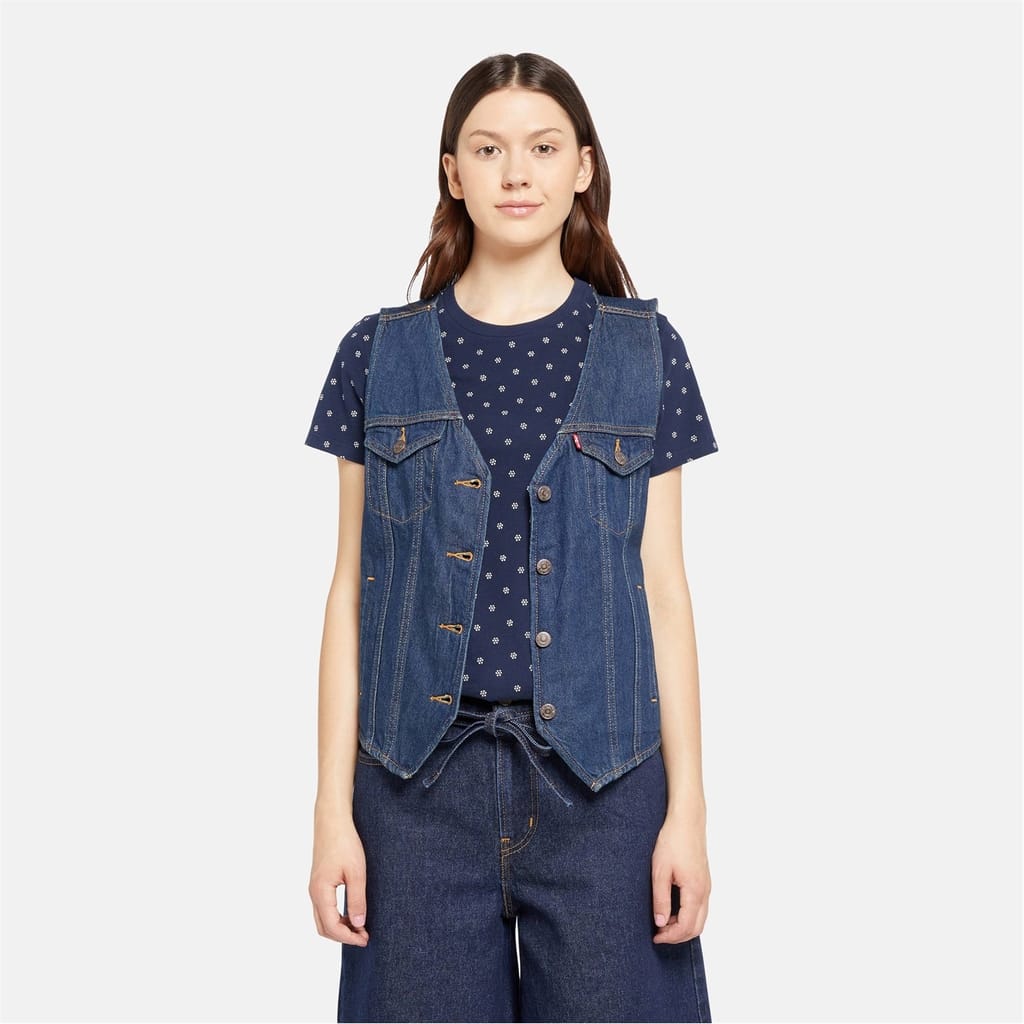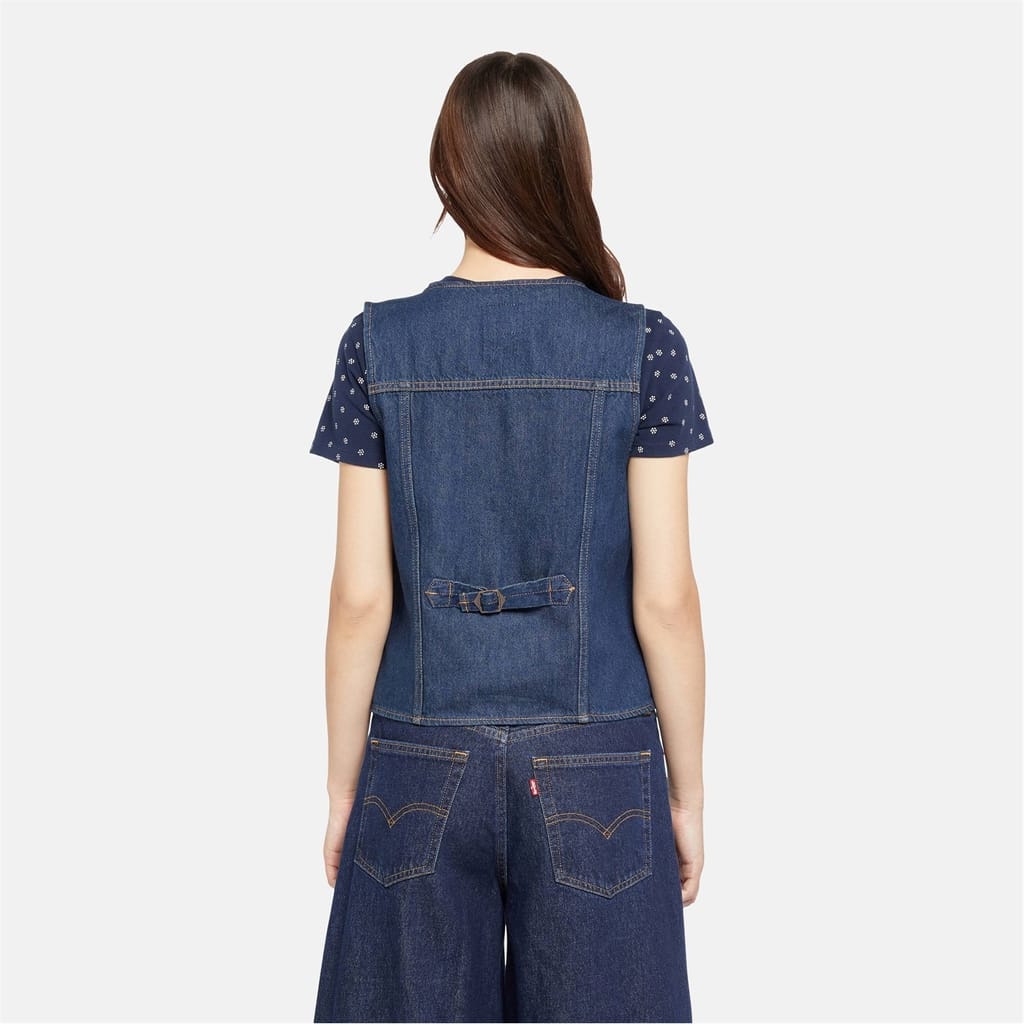 This Levi's waistcoat features a relaxed fit and a solid pattern, offering a timeless look. The button closure adds a classic touch, while the sleeveless design ensures versatility. Embellished with practical pockets, this piece is perfect for layering and provides both style and functionality. -