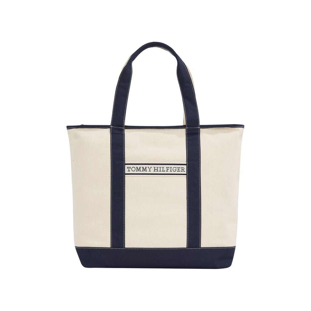 Discover the Tommy Hilfiger tote, a stylish addition to your collection. This color block design features a secure zipper closure and a practical double handle for easy carrying. The iconic logo embellishment adds a touch of brand recognition, making it a perfect blend of fashion and functionality. -