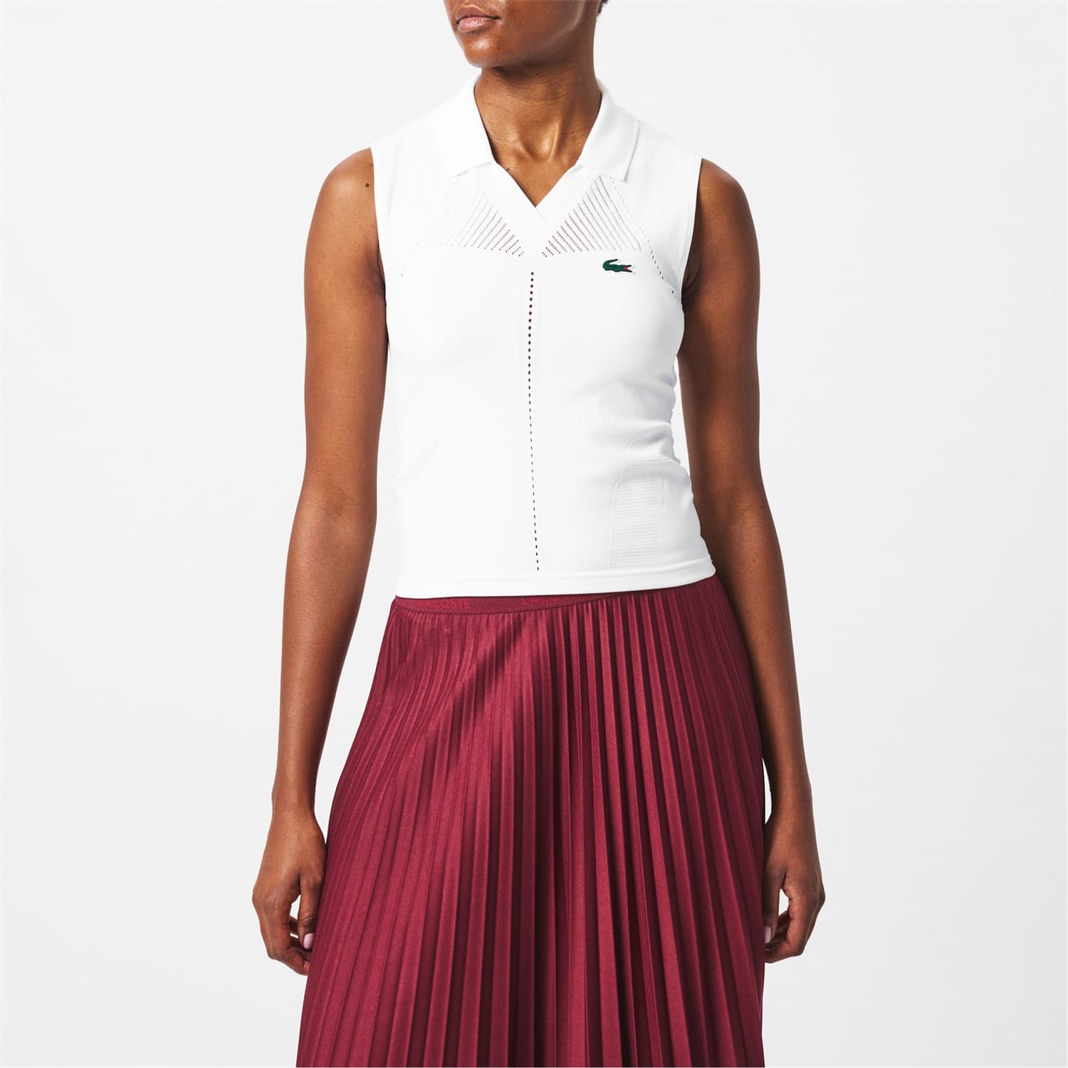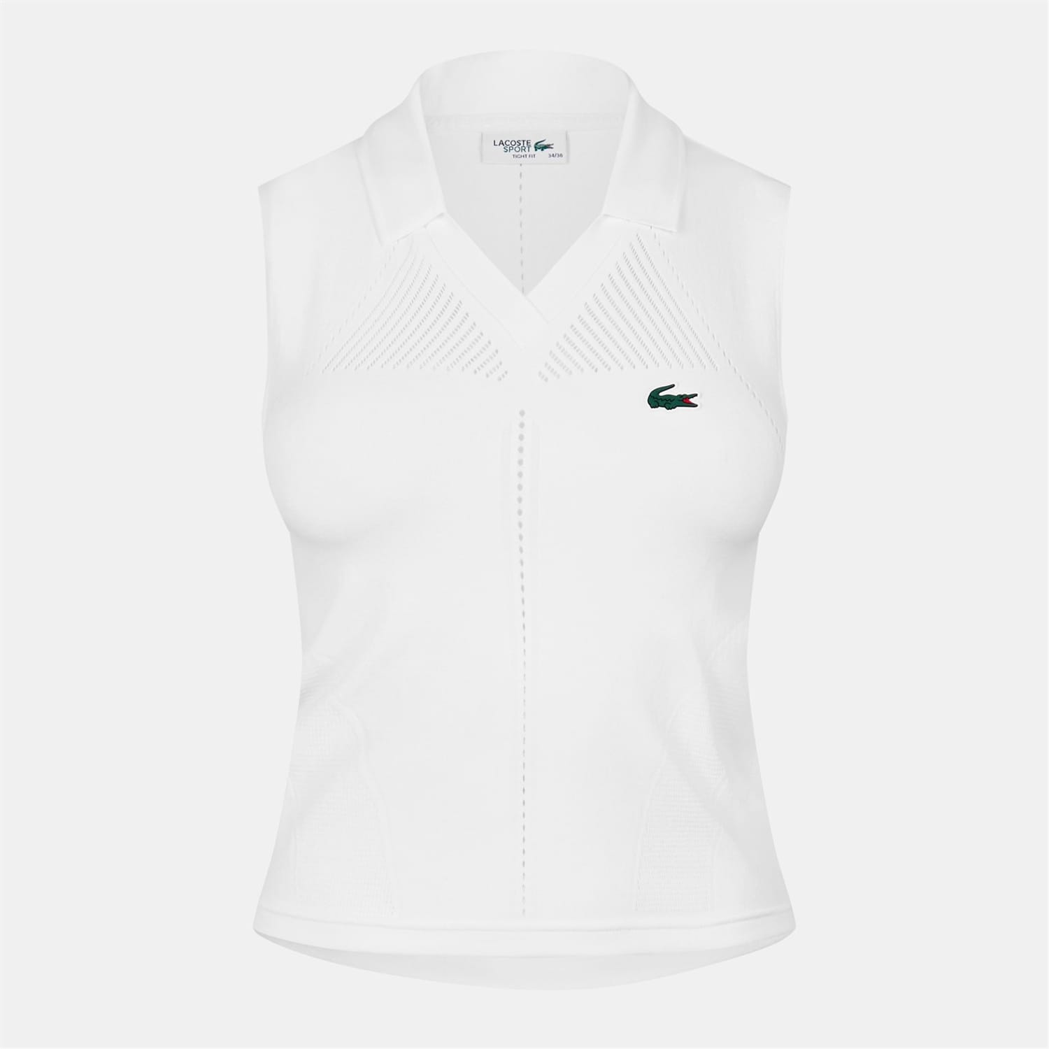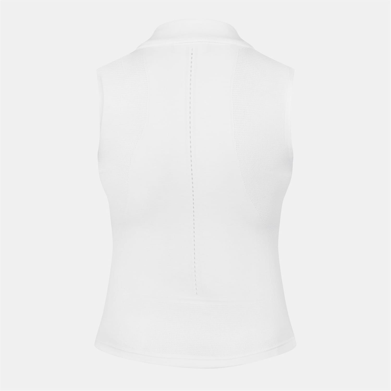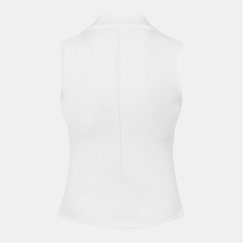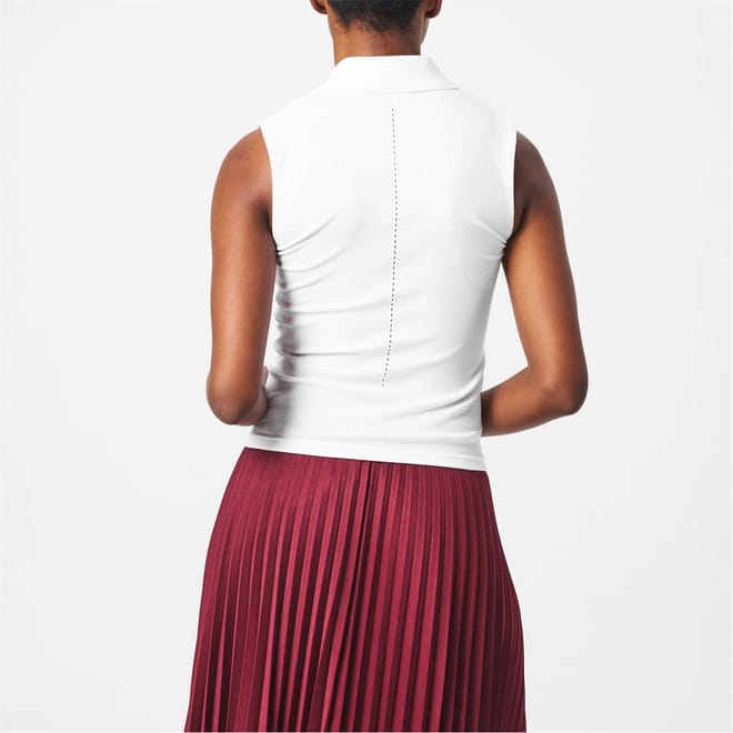 Sleeveless Stretch Knit Tennis Polo Shirt Technical seamless knit Tight fit Stretch fabric for freedom of movement Panel details and mesh inserts for maximum breathability Silicone crocodile on chest