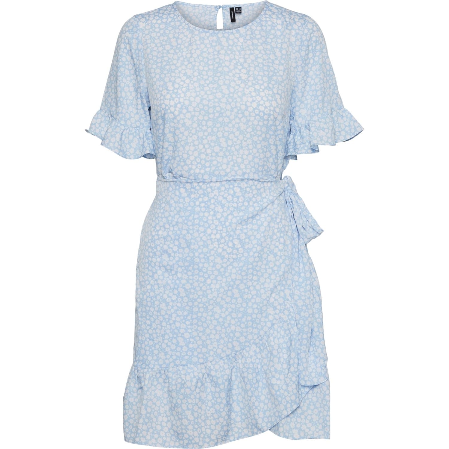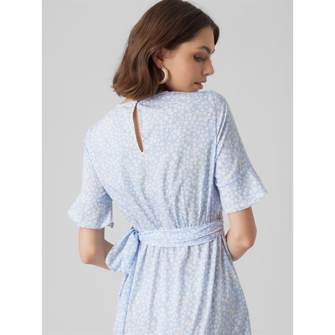 Refresh your collection with this Vero Moda Henna Mini Dress. Constructed with short sleeves and a crew neckline for a classic look, it features back button fastening and a tie waist for a secure fit. This dress is an all over print design with a signature logo and is complete with Vero Moda branding for a high quality appeal. -