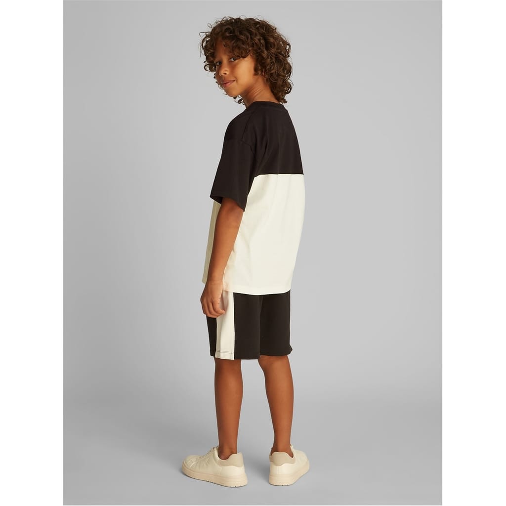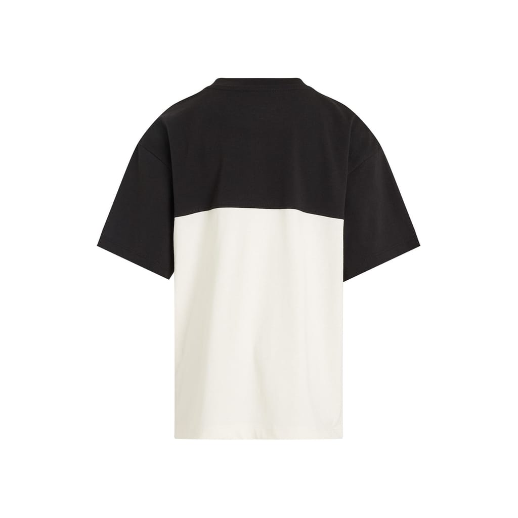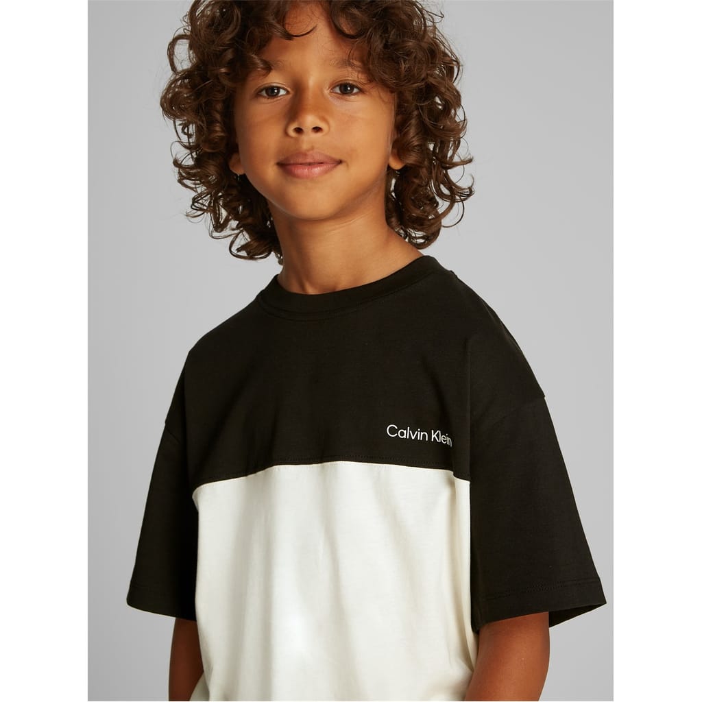 This Calvin Klein Jeans top is a casual essential, featuring a regular fit and short sleeves. The crew neck design is complemented by a striking color block pattern. A subtle logo embellishment adds a touch of brand identity, making it a versatile addition to your wardrobe. -