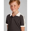 This Calvin Klein Jeans top is a semi-formal essential, featuring a polo collar and short sleeves. Crafted in a solid pattern, it offers a regular fit with a button closure. The design is completed with a subtle logo embellishment, adding a touch of brand identity. -