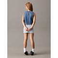 This Calvin Klein Jeans cropped top is a casual essential, featuring a crew neck and short sleeves. Crafted from soft material, it offers a regular fit and showcases a solid pattern. The top is embellished with a logo, adding a touch of brand identity to your wardrobe. -