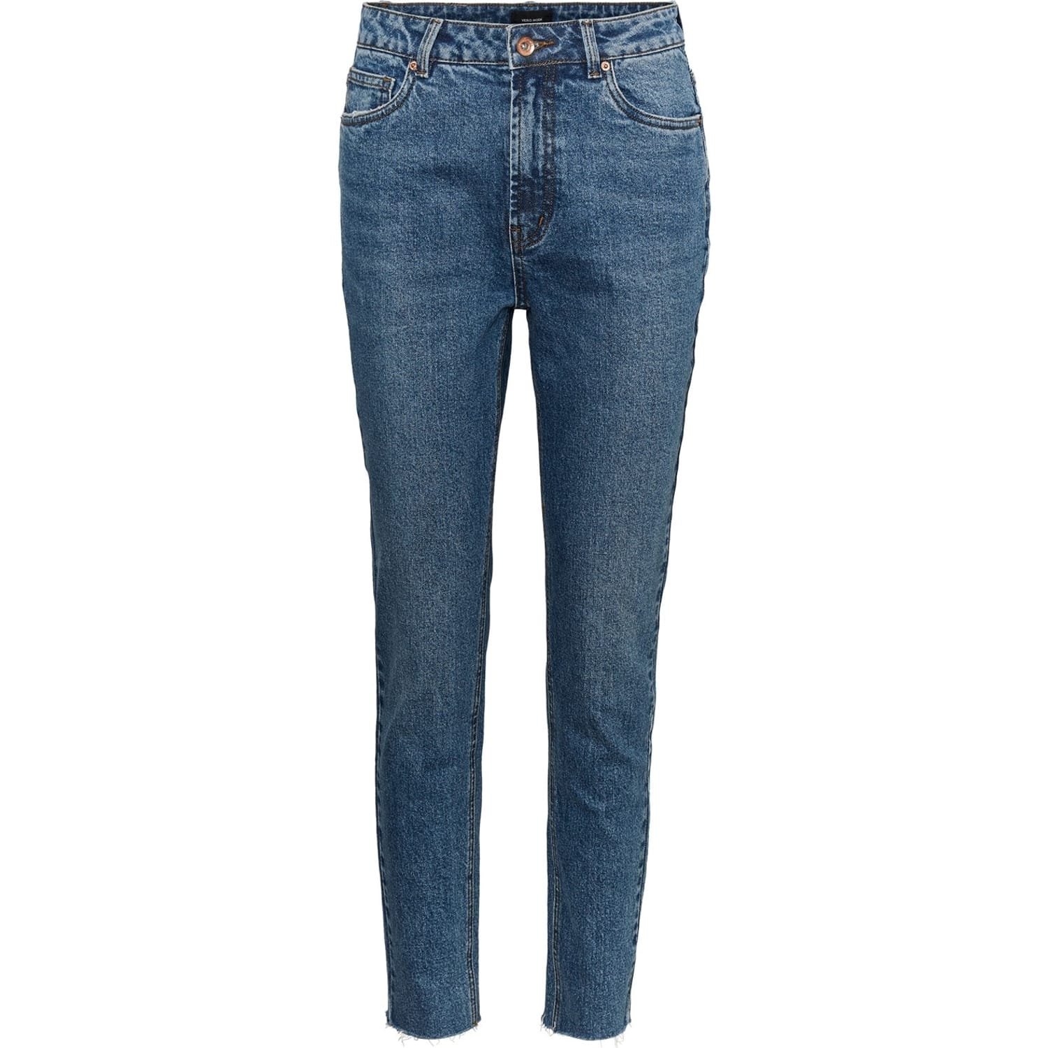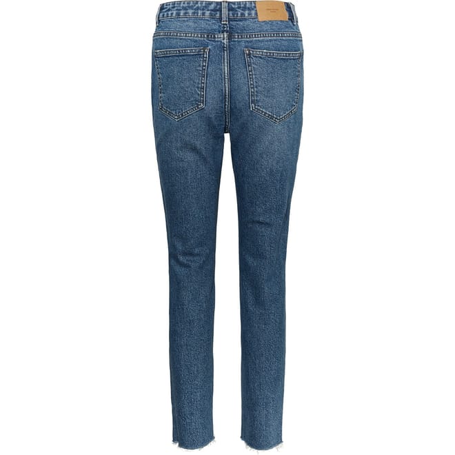 Vero Moda mom jeans offer a regular fit with a classic zip fly and button closure. Featuring a stylish logo and practical pockets, these jeans combine comfort and functionality for a versatile wardrobe staple. -