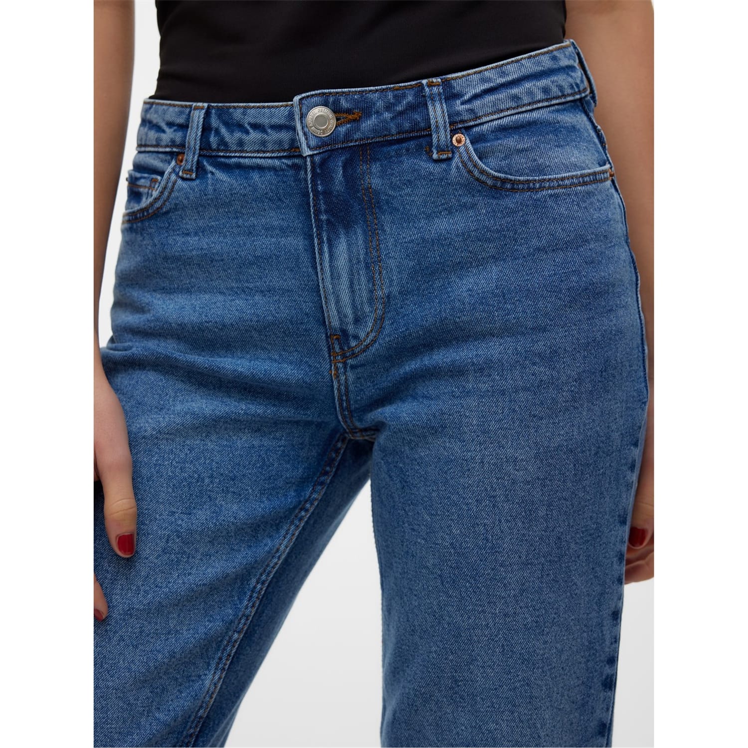 Upgrade your casual wardrobe with Vero Moda mom jeans. Featuring a relaxed fit, these jeans provide comfort and style for any occasion. The zipper and button closure ensures a secure fit. Perfect for a laid-back yet fashionable look. -