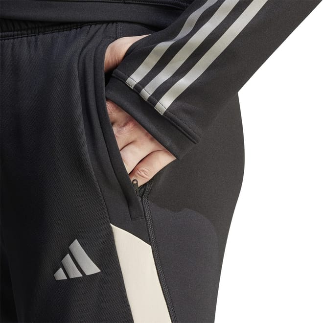 - Cut in a slim fit, they showcase an elasticated drawcord waist, offering a comfortable and secure fit during intense training sessions. The front zip-fastened pockets provide convenient storage for your essentials, while the zipped ankles allow easy on and off. The two-tone monochromatic colouring -