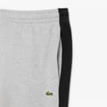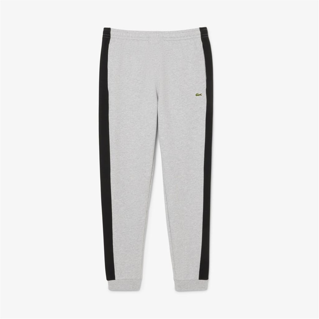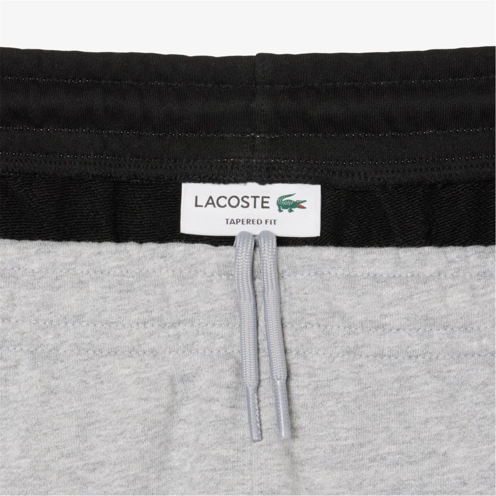 Lacoste joggers feature a stylish color block pattern and a convenient drawstring closure. These joggers are adorned with the iconic logo, offering a blend of comfort and style for casual wear. -