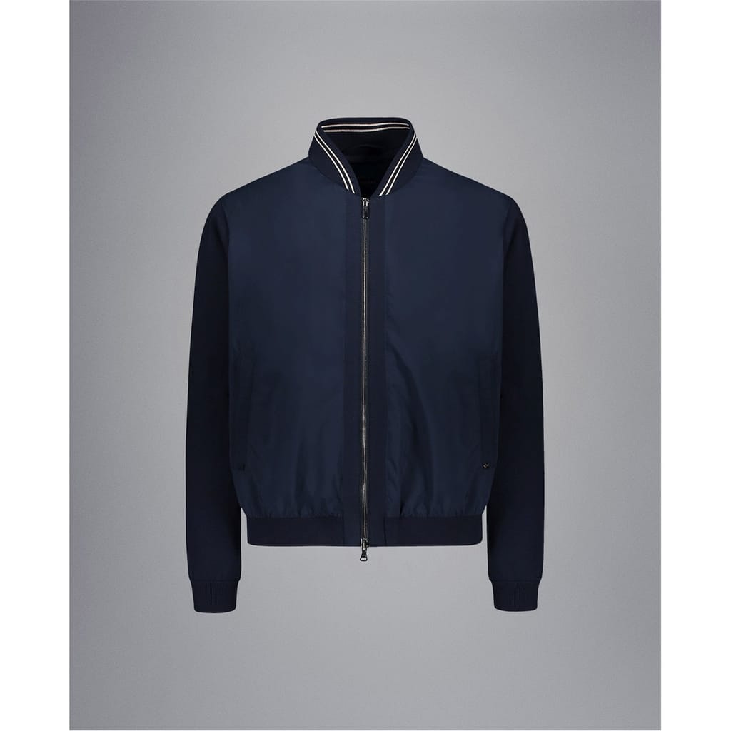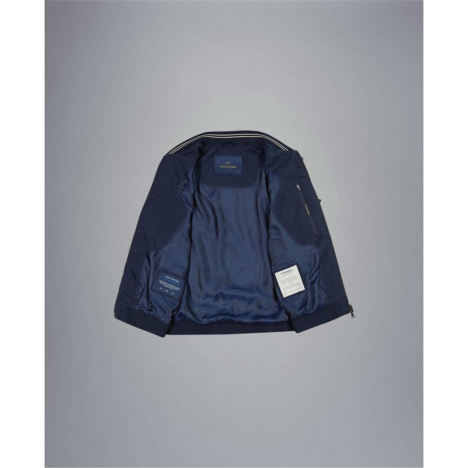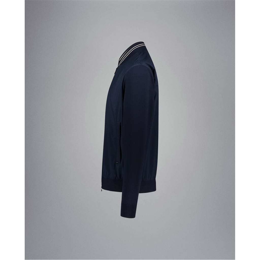 This Paul & Shark softshell jacket features a ribbed collar, ribbed hem, and ribbed cuffs for a comfortable fit. The solid pattern and regular fit offer a classic look, while the zipper closure ensures practicality. The jacket is embellished with a logo, adding a touch of brand identity. -