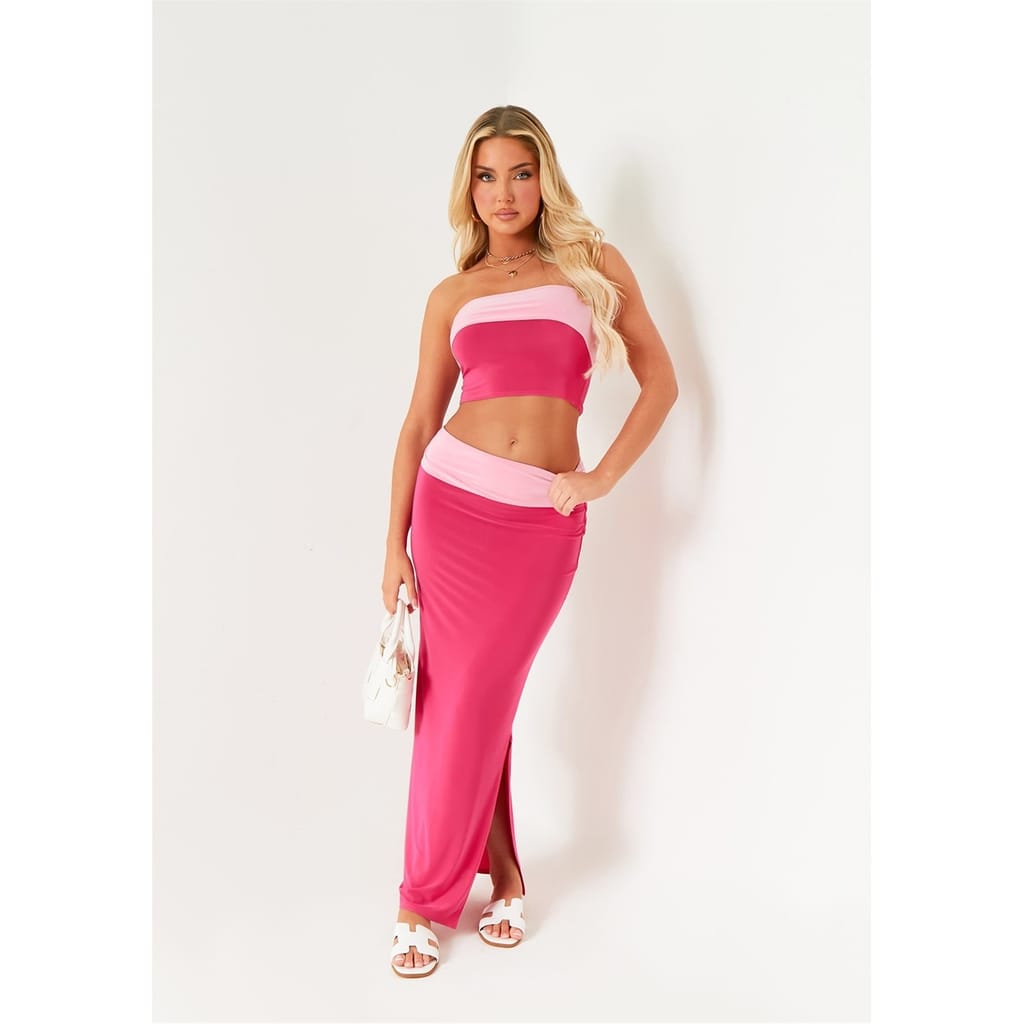 Elevate your wardrobe with our stunning Pink Contrast Fold Over Maxi Skirt, a perfect blend of comfort and style. This eye-catching piece features a chic fold-over waistband that flatters every body type, allowing you to customize the fit to your liking. The soft, breathable fabric drapes beautifully, creating a graceful silhouette that flows with every step you take. -