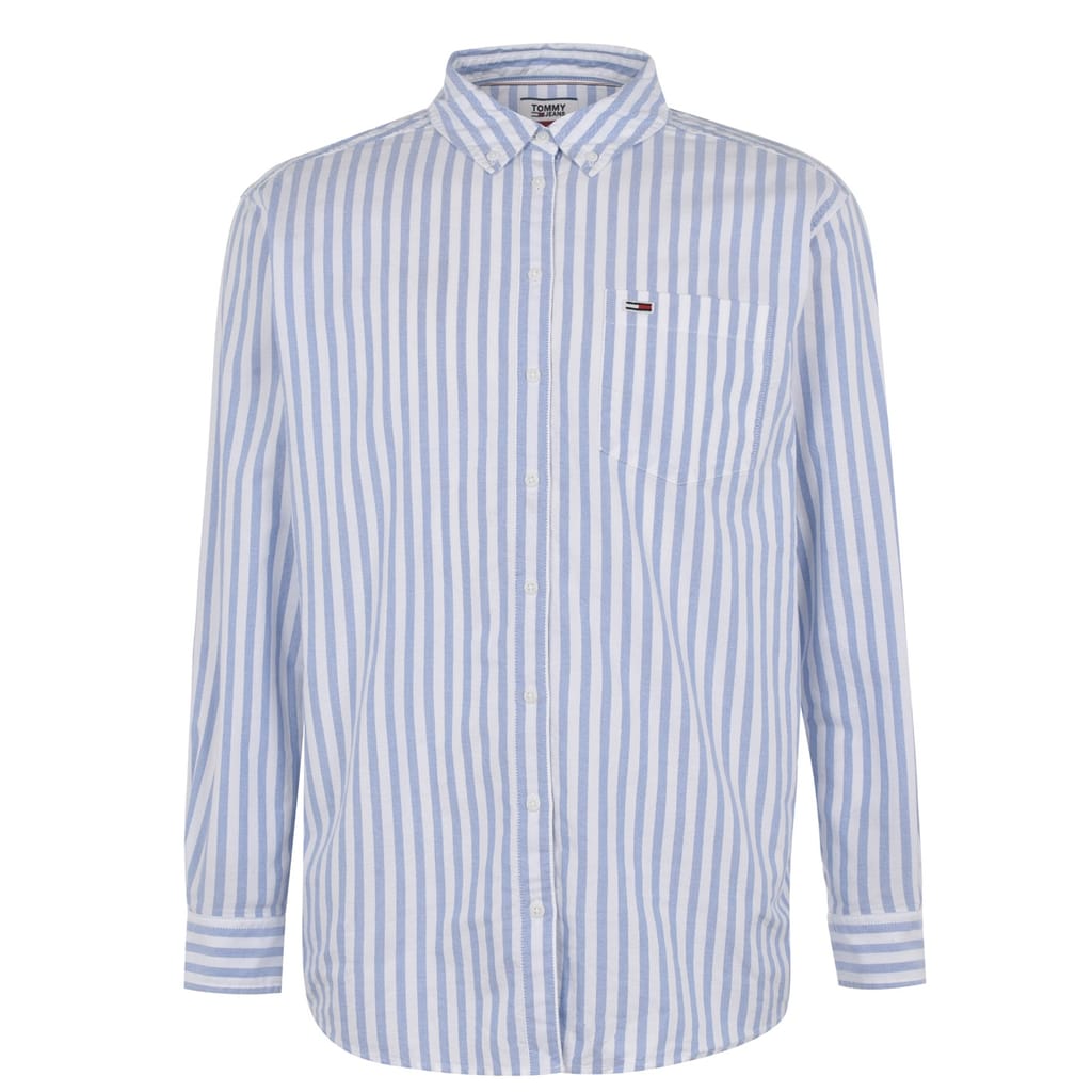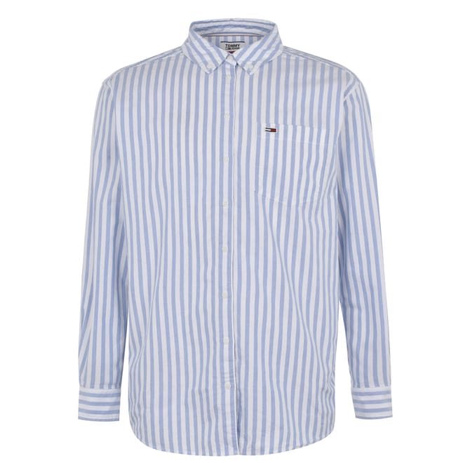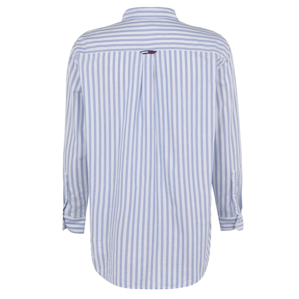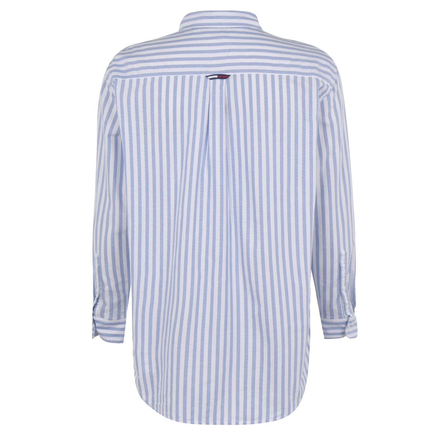Highlights. Pure cotton. Oxford weave. All-over vertical stripe. Button-down collar. Dropped shoulders. Horizontal stripe on cuffs. One chest patch pocket. Signature tape inside neckline. Tommy Hilfiger flag embroidery on pocket. Shape & fit. Boyfriend fit. Our model is 1.76m and wears size S.- Blouses and Shirts
