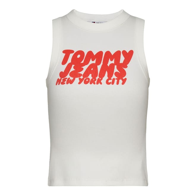 This Tommy Jeans top features a slim fit and a sleeveless design, perfect for casual wear. The graphic print with lettering adds a stylish touch, while the crew neck offers a classic look. The logo embellishment enhances its appeal, making it a standout piece in any wardrobe. -