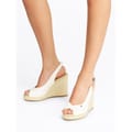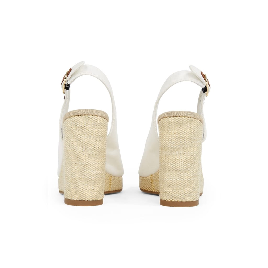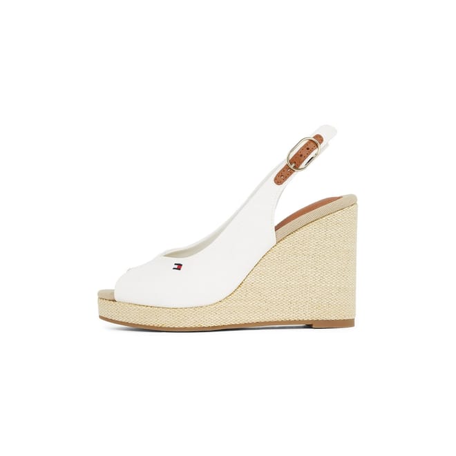 Indulge in timeless elegance and accesible luxury with the Iconic Elena Sling Back Wedges from Tommy Hilfiger. Crafted with a recycled polyester upper and lining, these sandals are not only comfortable but also showcase Tommy Hilfiger's commitment to sustainability. With their peep-toe design and adjustable heel strap, these sandals offer both style and comfort. The woven detailing on the midsole adds a touch of texture, elevating these wedges to a whole new level of sophistication. Designed with a thermoplastic rubber outsole, it ensures durability and provides traction for confident strides. The wedge heel offers a flattering lift while the open toe adds a playful touch. To complete the design, the signature Tommy Hilfiger embroidered flag on the side is a timeless symbol of the brand's heritage and quality craftsmanship. Whether it's casual outings or more formal events, these sandals are perfect for any occasion. Composition: Upper/ Lining: Recycled Polyester. Sole: Thermoplastic Rubber. Follow care instructions.