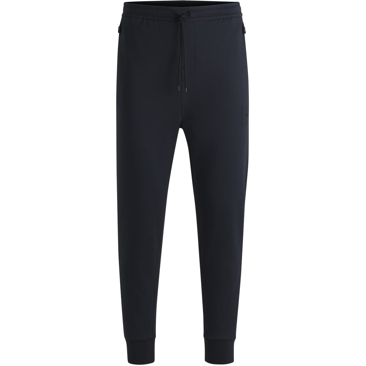 Boss joggers feature a ribbed pattern and a drawstring closure for a comfortable fit. These regular fit joggers are designed with a cuffed leg and are adorned with a subtle logo embellishment, offering a stylish yet relaxed look. -