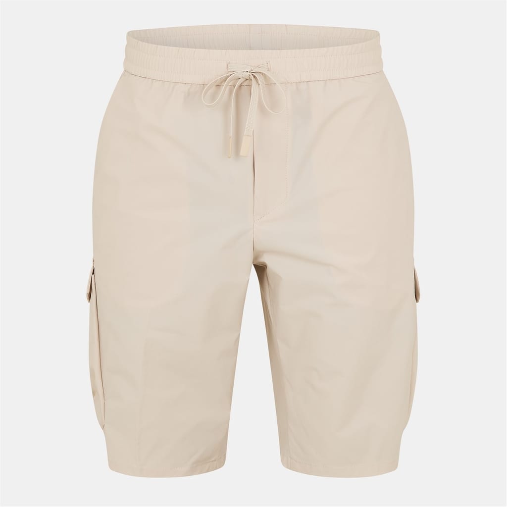 These Boss cargo shorts are designed for a casual look, featuring a solid pattern and practical drawstring closure. The shorts include multiple pockets, including side pockets, offering both style and functionality. Ideal for those seeking a blend of comfort and utility in their wardrobe. -