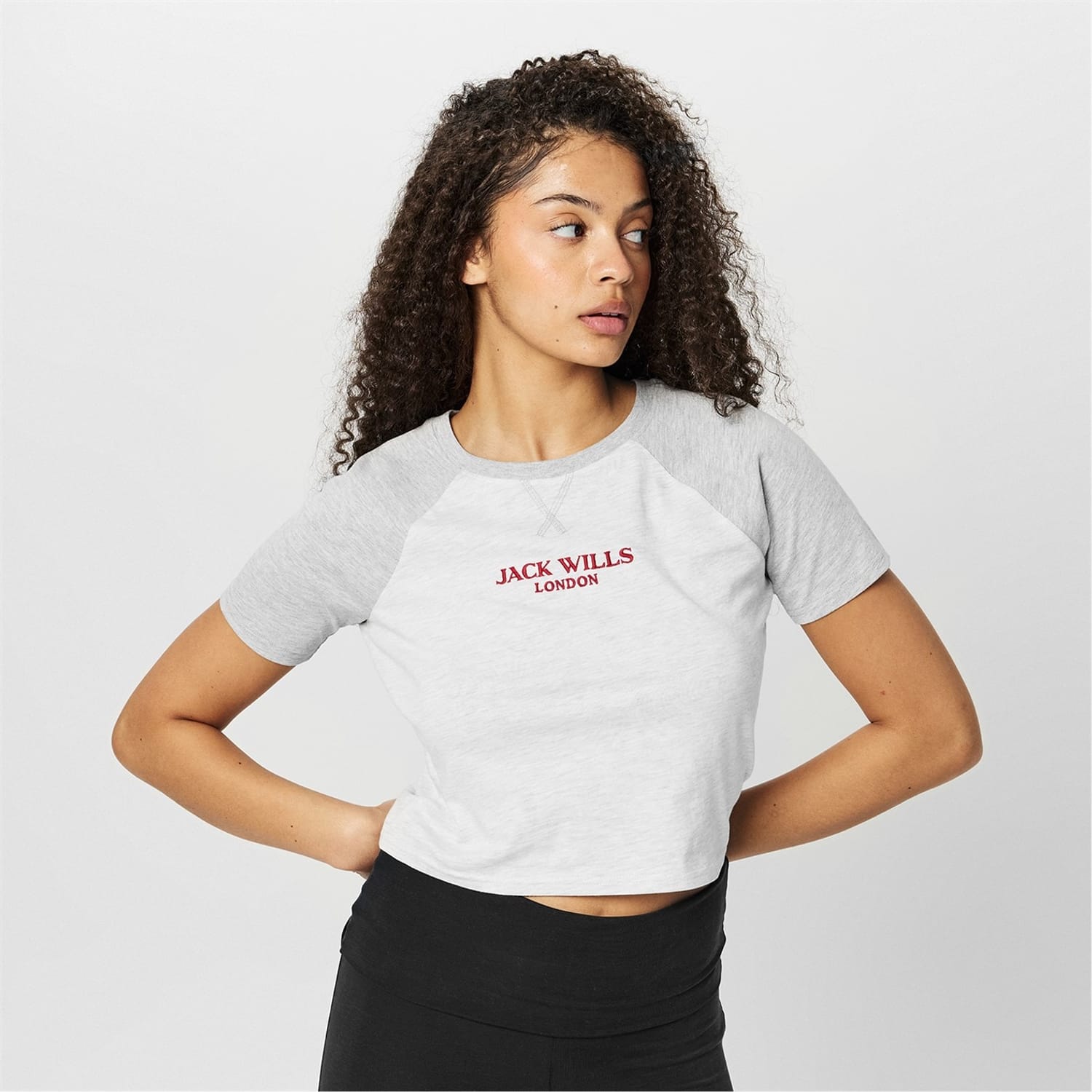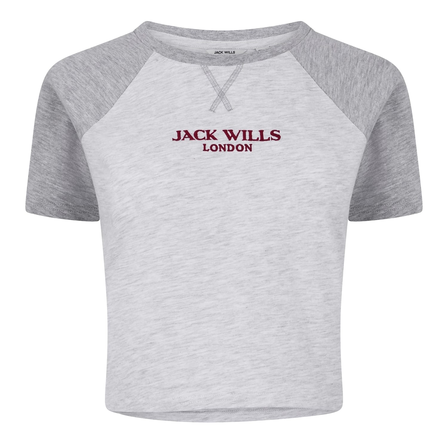 This Jack Wills cropped top features an oversize fit and a crew neck, perfect for a casual look. The short sleeves and color block pattern add a stylish touch, while the graphic lettering and logo embellishments make it stand out. -