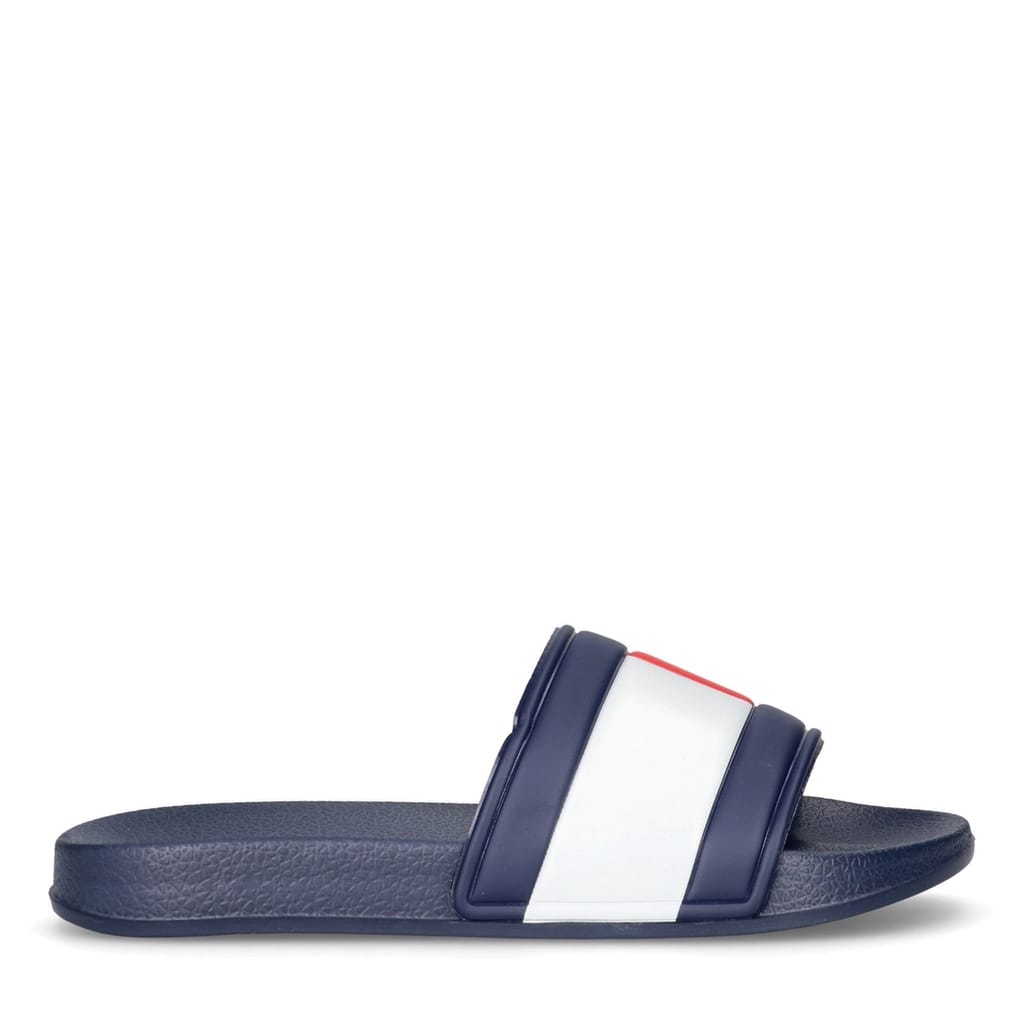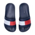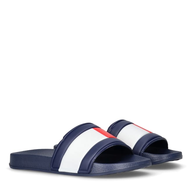 These junior Tommy Hilfiger slides are a stylish choice for young fashion enthusiasts. Crafted as open-toe mules, they offer a comfortable fit and easy wearability. Perfect for casual outings, these sandals combine the brand's signature style with practicality, making them an ideal addition to any young wardrobe. -