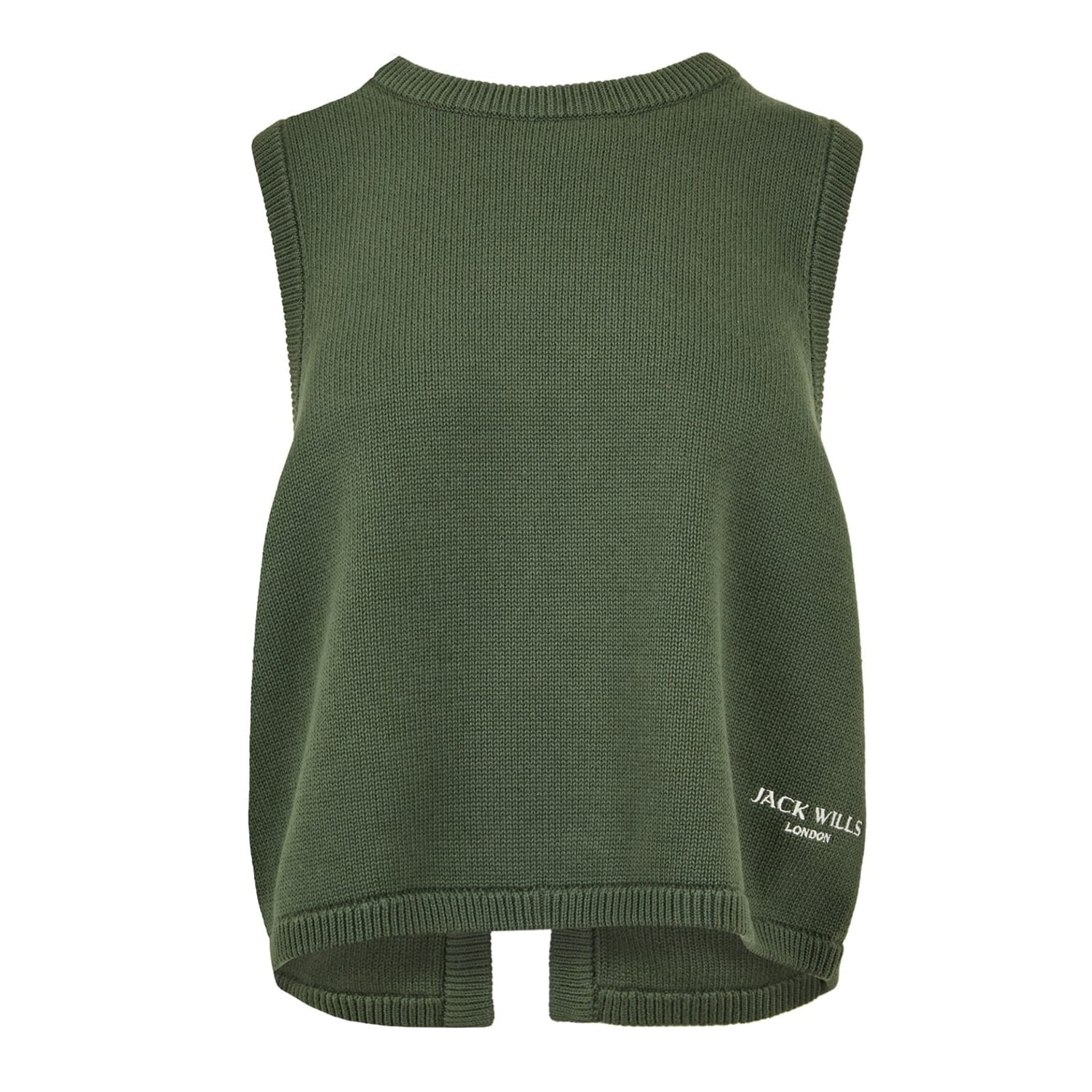 This Jack Wills knit vest is a casual essential, featuring a relaxed fit and a solid knit pattern. The short length and straight hem offer a modern silhouette, while the tie-back closure adds a unique touch. Embellished with the brand's logo, this piece is perfect for those seeking a stylish yet understated look. -