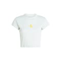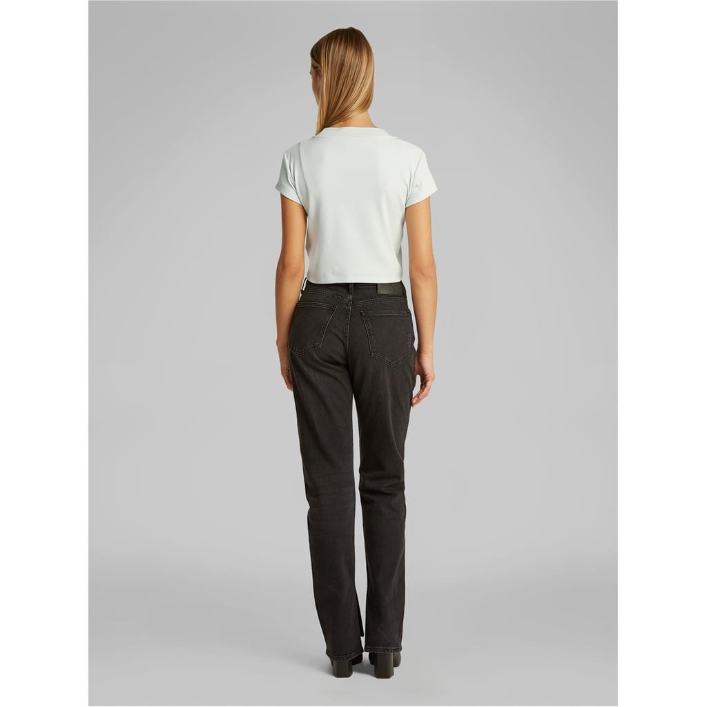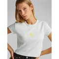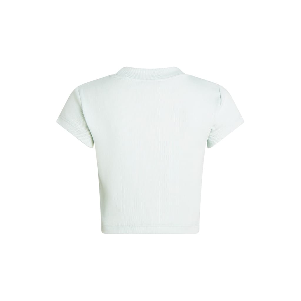 This Calvin Klein Jeans baby top is a casual essential from the basic collection. Featuring a crew neck and short sleeves, it offers a slim fit with a ribbed pattern. The cropped length adds a modern touch, while the embroidered logo embellishment provides a stylish finish. The ribbed cuffs complete the look, making it a perfect choice for everyday wear. -