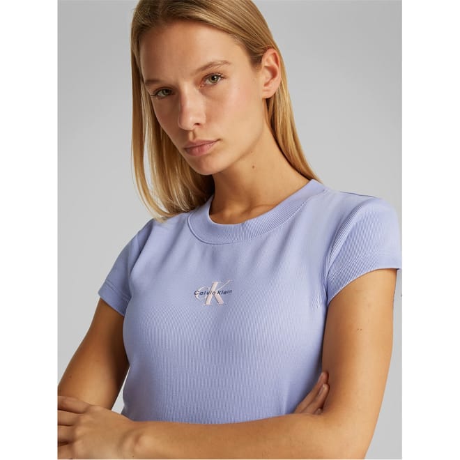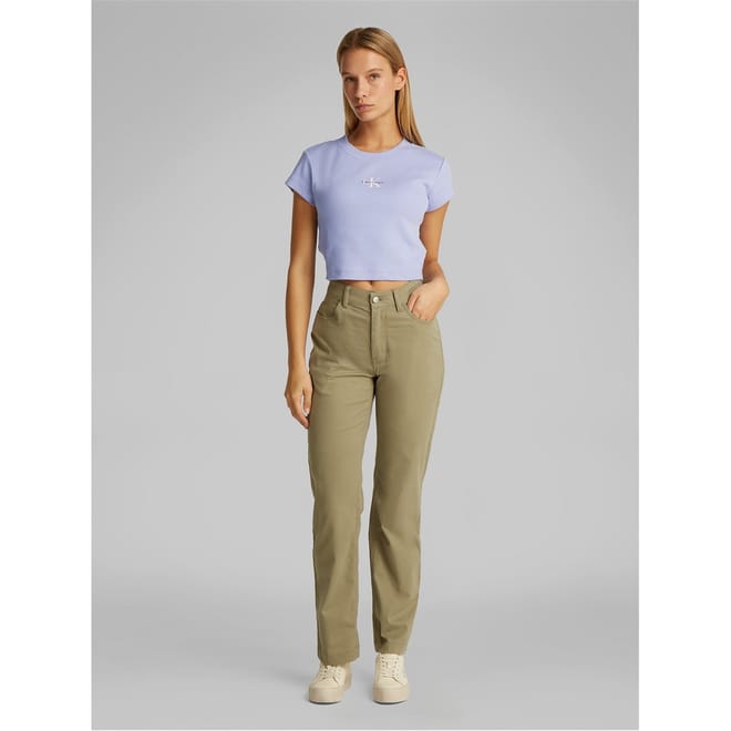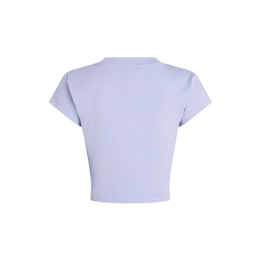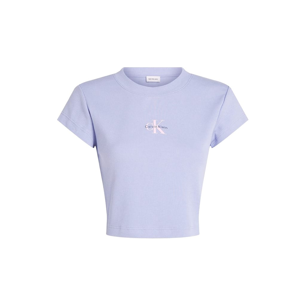 This Calvin Klein Jeans baby top is a casual essential from the basic collection. Featuring a crew neck and short sleeves, it offers a slim fit with a cropped length. The ribbed pattern adds texture, while the logo embellishment provides a stylish touch. -