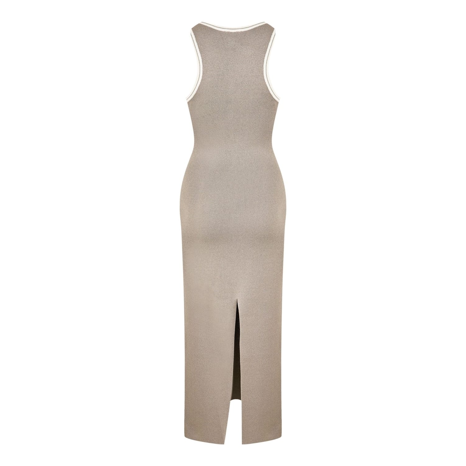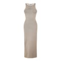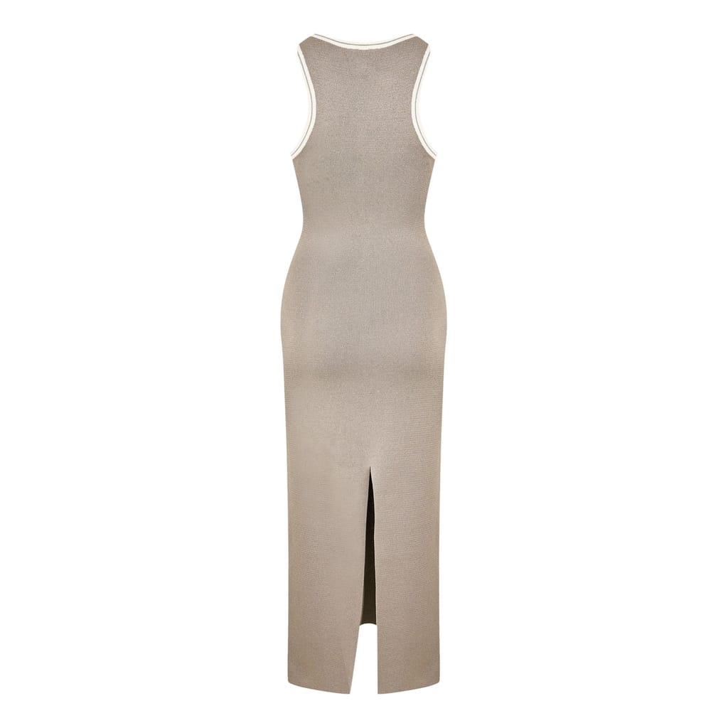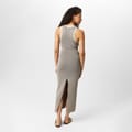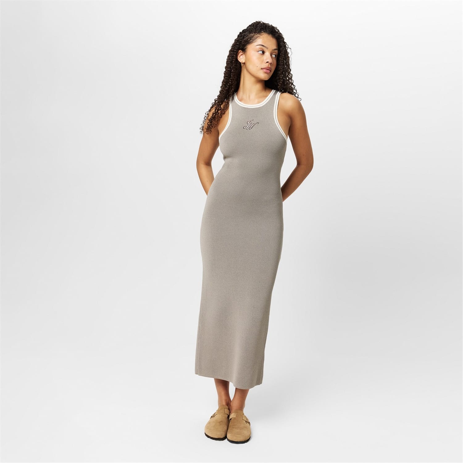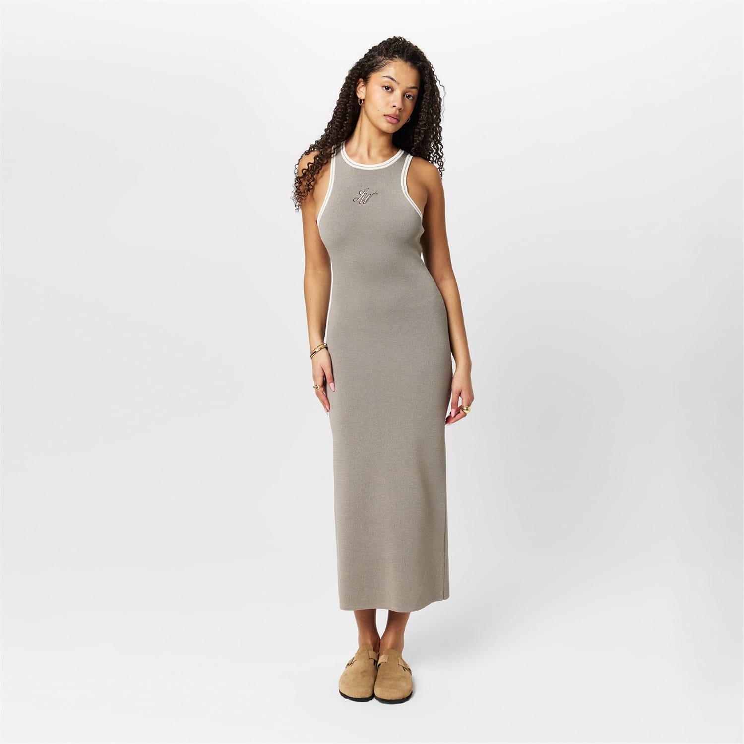 This Jack Wills maxi dress is a perfect blend of style and comfort. Crafted from knit material, it features a crew neck and a straight hem, offering a sleek silhouette. The slim fit enhances its elegant slip style, while the solid pattern and embroidered details add a touch of sophistication. -