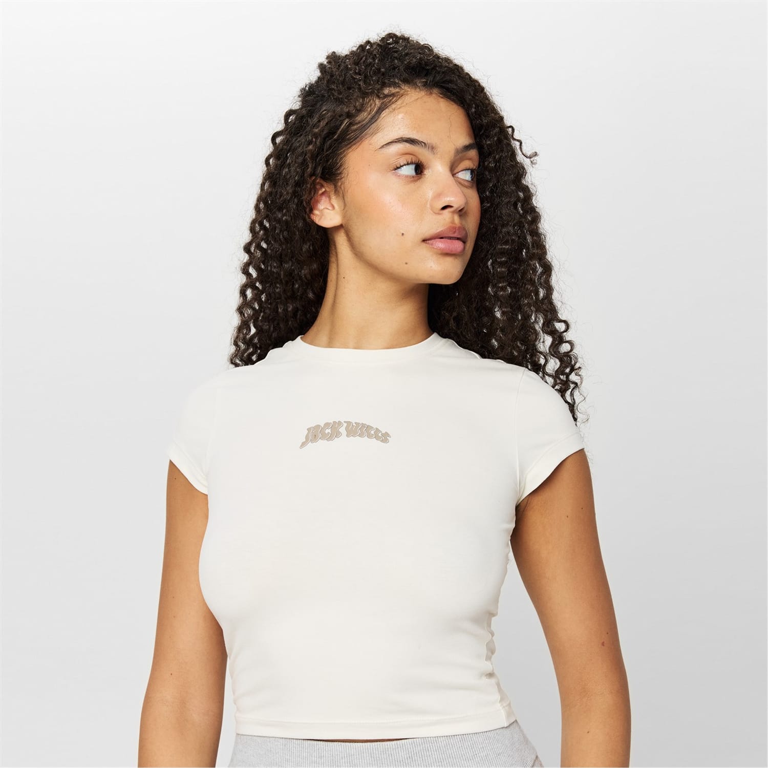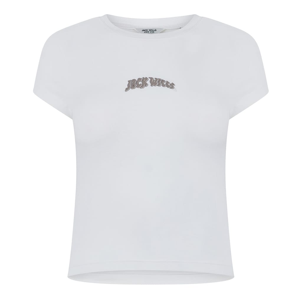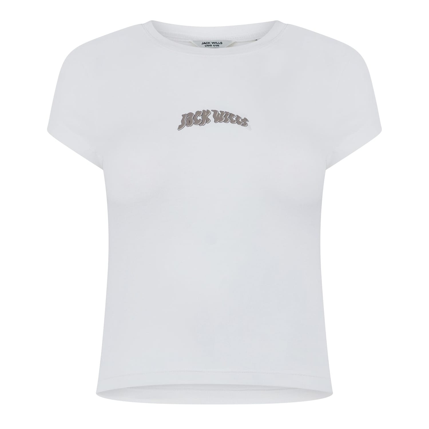This Jack Wills cropped top is a casual essential, featuring a slim fit and short cap sleeves. The crew neck design is adorned with a graphic print and logo embellishments, adding a touch of style with its lettering detail. Perfect for those who appreciate a blend of comfort and fashion. -