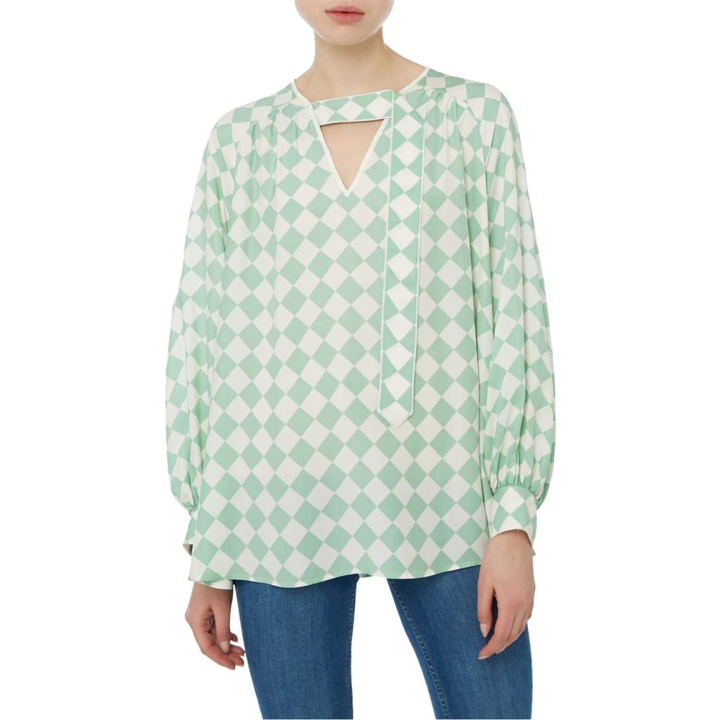 Creating a versatile look, this Ora blouse by Sportmax Code has an effortlessly chic aesthetic. Mad from a smooth pure viscose fabric, it is framed with long blouson sleeves and tie detailing at the V-neck for comfortable wear. Adorned with an all-over geometric print pattern to lend a distinctivelySportmax Code Ora neck tie blouse- Blouses and Shirts