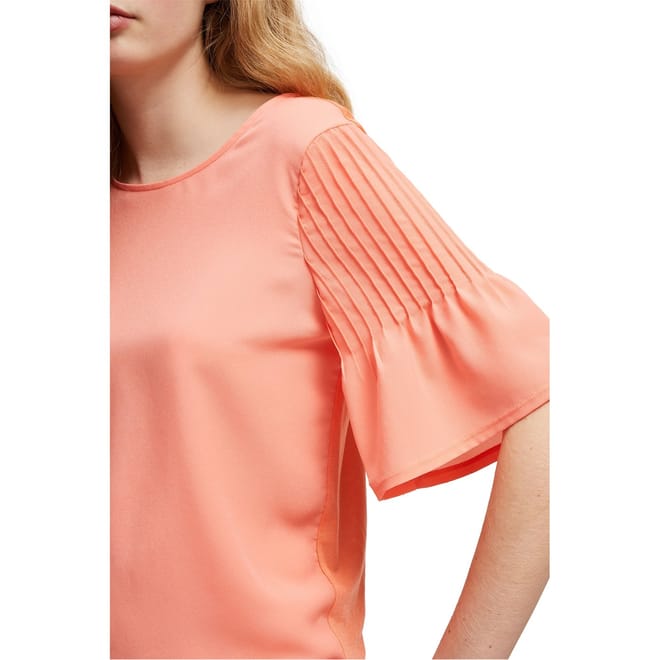 Elevate everyday basics with pretty finishing touches. The Classic Crepe Pintuck Shoulder T-Shirt is an easy crew neck t-shirt with a form-skimming fit and relaxed drop hem. The floaty sleeves are finished with a subtle pintuck throughout, emphasising the movement and shape of the short sleeves. Paired with loose-fitting jeans and trainers, this lightweight top is an effortless off-duty piece.- T-Shirts