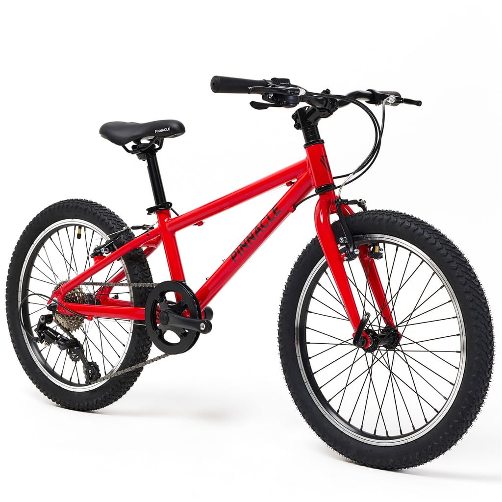 Ready for adventure, the Pinnacle Ash 20 Bike Junior combines durability, style, and performance for young riders aged 5 to 8. Perfect for conquering neighbourhood streets or trails, it offers smooth handling and reliable features that build confidence on every ride. Lightweight Aluminum Frame: Crafted for durability without the extra weight, the Ash 20 features a robust aluminum frame that ensures easy manoeuvrability and long-lasting strength. 20-inch Wheels: The ideal size for young riders, these wheels offer a smooth ride over a variety of terrains, from paved roads to bumpy trails. 8-Speed Thumb Shifter Gears: With an 8-speed thumb shifter, the Ash 20 makes gear changes easy and smooth, allowing for effortless shifting on hills or flat surfaces. Additional Information: Suitable for ages 5 - 8 years old. Minimum inseam measurement 50cm Rims: 20 Alloy Rims, 36h. Tyres: 20 X 1.90 Rubber Tires Shifter: 8 speed Pinnacle Rear Derailleur: 8 speed Pinnacle Crankset: 36t Chainset with integrated chain guard. Cassette: 11-32t 8-Speed Pinnacle Cassette Bottom Bracket: 68mm BB Handlebar: 580mm width x 20mm rise, 10 degree backsweep. Stem: 60mm extension stem 15 deg rise. . Grips: Soft 120m, with plugs. Brakes: V-brake Seatpost: 27.2 X 250mm Seatpost with Quick release clamp. -