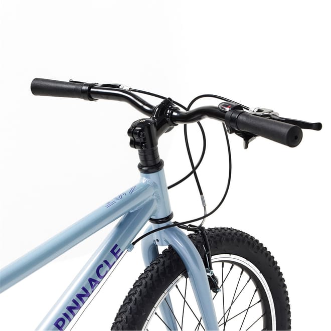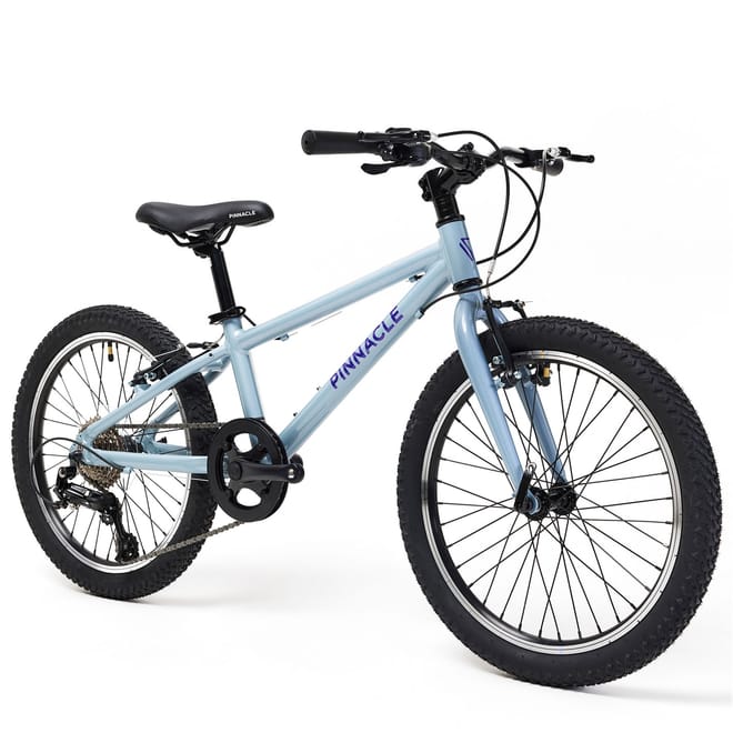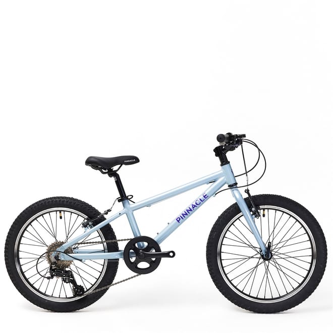 Ready for adventure, the Pinnacle Ash 20 Bike Junior combines durability, style, and performance for young riders aged 5 to 8. Perfect for conquering neighbourhood streets or trails, it offers smooth handling and reliable features that build confidence on every ride. Lightweight Aluminum Frame: Crafted for durability without the extra weight, the Ash 20 features a robust aluminum frame that ensures easy manoeuvrability and long-lasting strength. 20-inch Wheels: The ideal size for young riders, these wheels offer a smooth ride over a variety of terrains, from paved roads to bumpy trails. 8-Speed Thumb Shifter Gears: With an 8-speed thumb shifter, the Ash 20 makes gear changes easy and smooth, allowing for effortless shifting on hills or flat surfaces. Suitable for ages 5 - 8 years old. Minimum inseam measurement 50cm Rims: 20 Alloy Rims, 36h. Tyres: 20 X 1.90 Rubber Tires Shifter: 8 speed Pinnacle Rear Derailleur: 8 speed Pinnacle Crankset: 36t Chainset with integrated chain guard. Cassette: 11-32t 8-Speed Pinnacle Cassette Bottom Bracket: 68mm BB Handlebar: 580mm width x 20mm rise, 10 degree backsweep. Stem: 60mm extension stem 15 deg rise. . Grips: Soft 120m, with plugs. Brakes: V-brake Seatpost: 27.2 X 250mm Seatpost with Quick release clamp. -