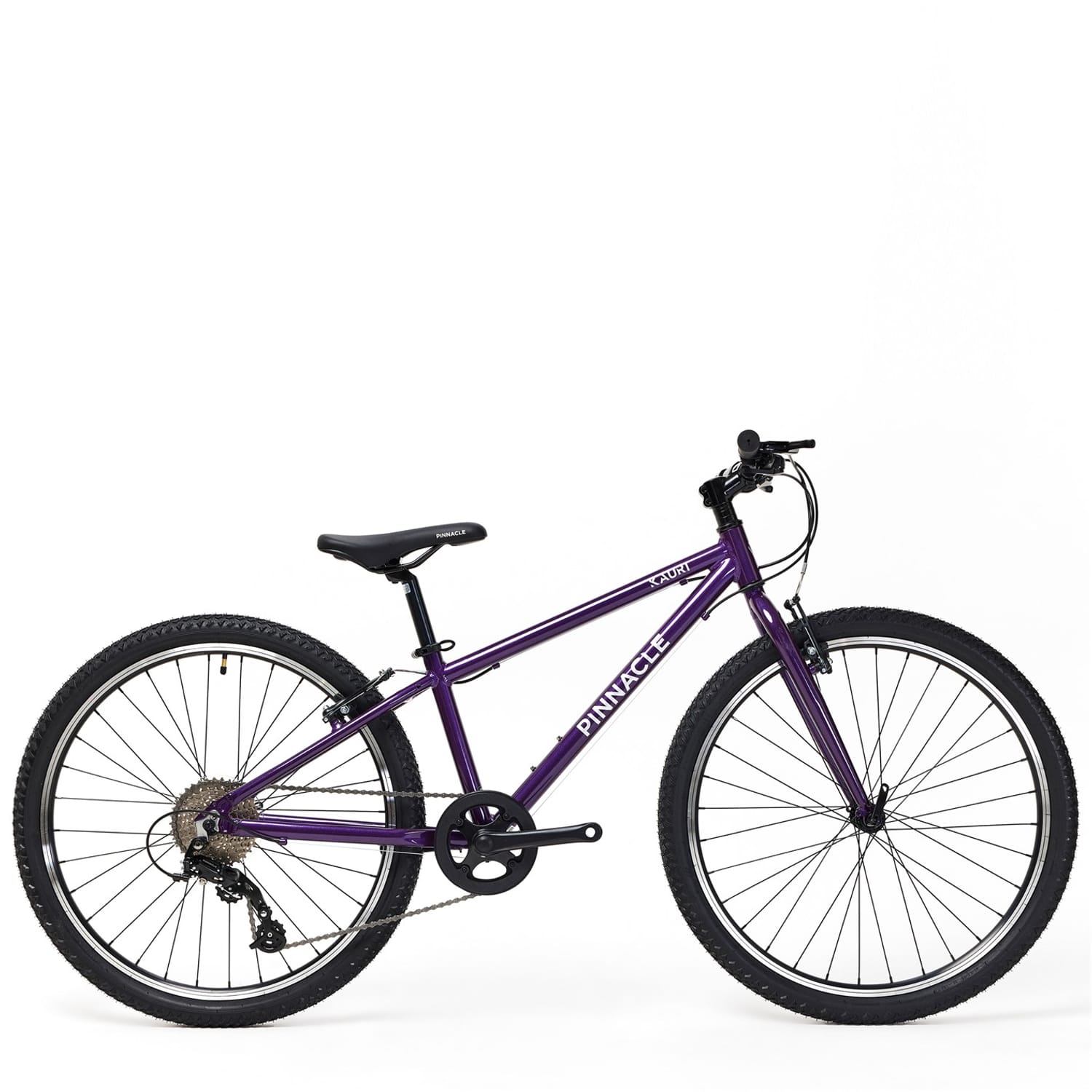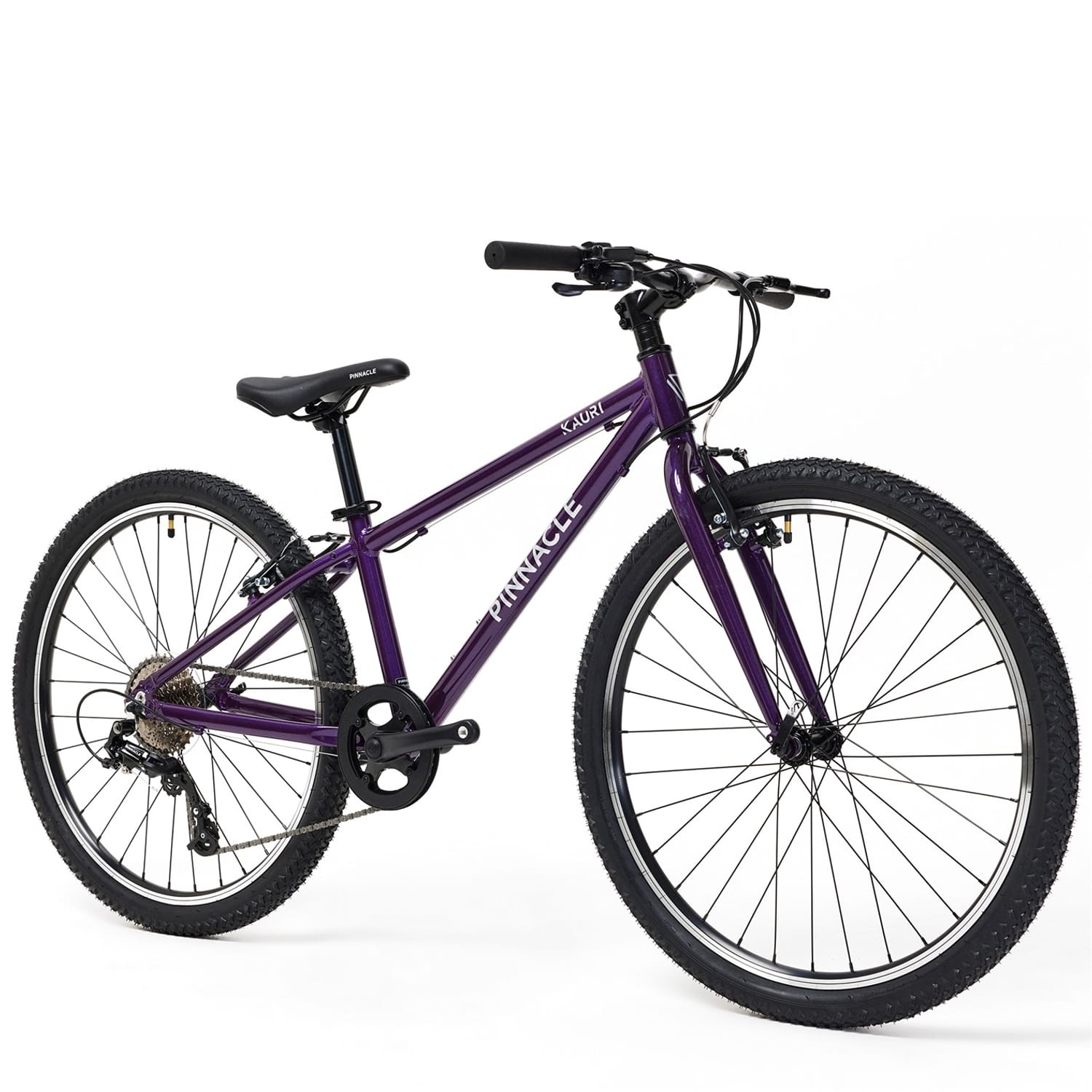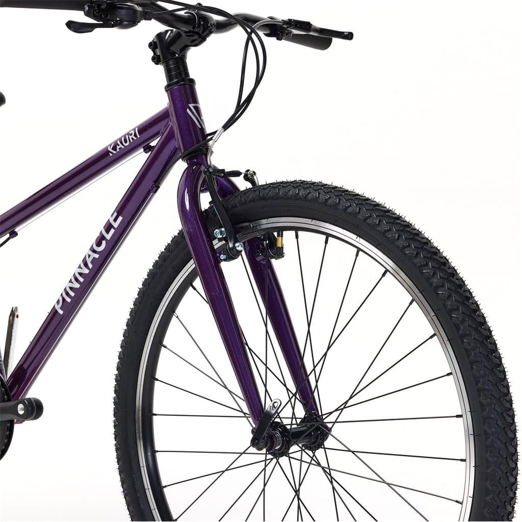 Ready for adventure, the Pinnacle Kauri 26 Bike Junior combines durability, style, and performance for young riders aged 11+. Perfect for conquering neighbourhood streets or trails, it offers smooth handling and reliable features that build confidence on every ride. Lightweight Aluminum Frame: Crafted for durability without the extra weight, the Kauri 26 features a robust aluminum frame that ensures easy manoeuvrability and long-lasting strength. 26-inch Wheels: The ideal size for young riders, these wheels offer a smooth ride over a variety of terrains, from paved roads to bumpy trails. 8-Speed Thumb Shifter Gears: With an 8-speed thumb shifter, the Kauri 26 makes gear changes easy and smooth, allowing for effortless shifting on hills or flat surfaces. Suitable for ages 11+ years old. Minimum inseam measurement 64cm Rims: 26 Alloy Rims, 32h. Tyres: 26 X 1.90 Rubber Tires Shifter: 8 speed Pinnacle Rear Derailleur: 8 speed Pinnacle Crankset: 36t Chainset with integrated chain guard. Cassette: 11-36t 8-Speed Pinnacle Cassette Bottom Bracket: 68mm BB Handlebar: 620mm width x 20mm rise, 6 degree backsweep. Stem: 60mm extension stem 15 deg rise. . Grips: Soft 130m, with plugs. Brakes: V-brake Seatpost: 27.2 X 350mm Seatpost with Quick release clamp. -