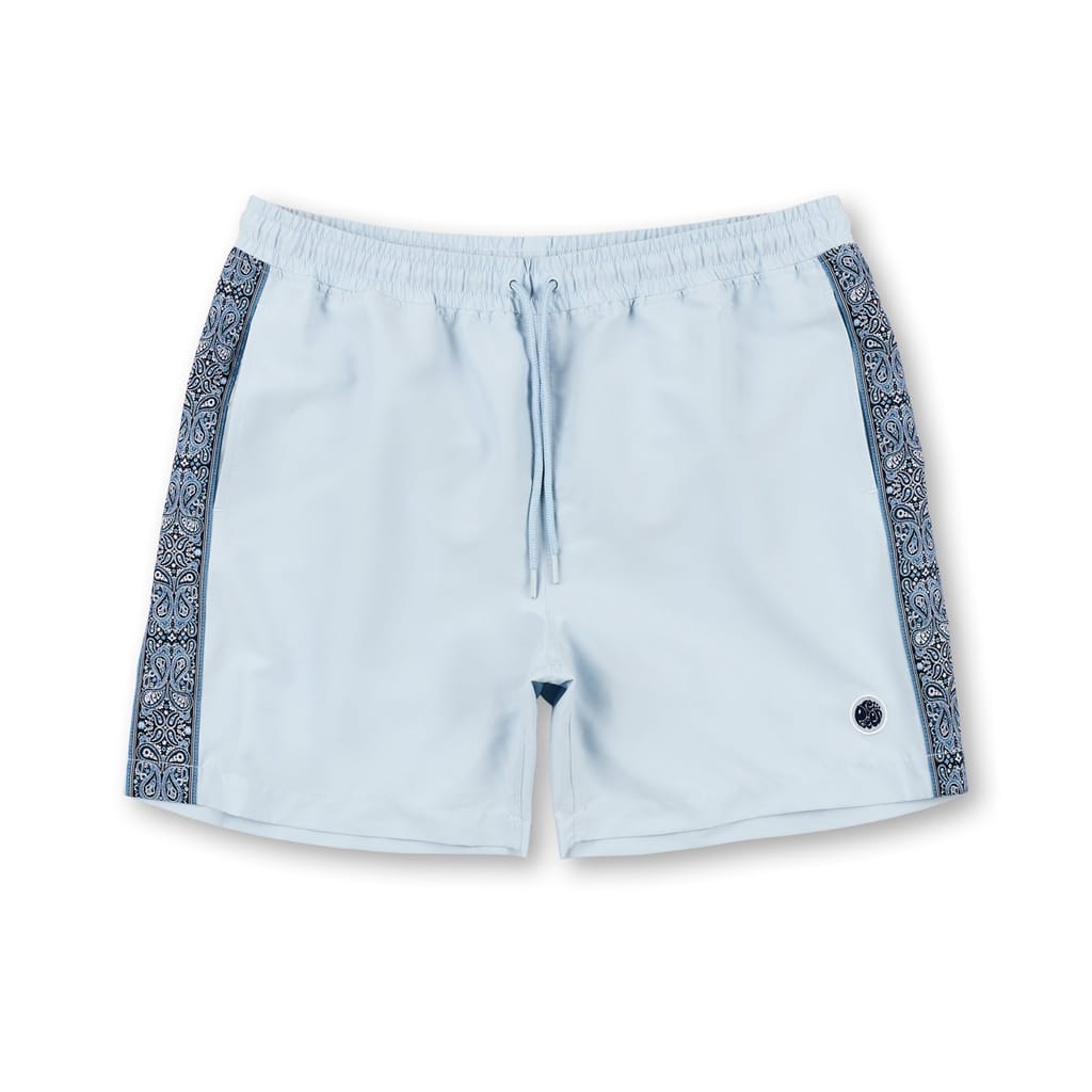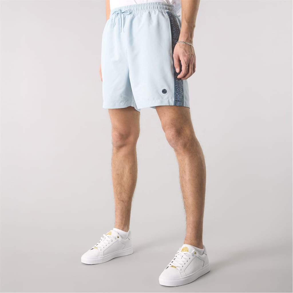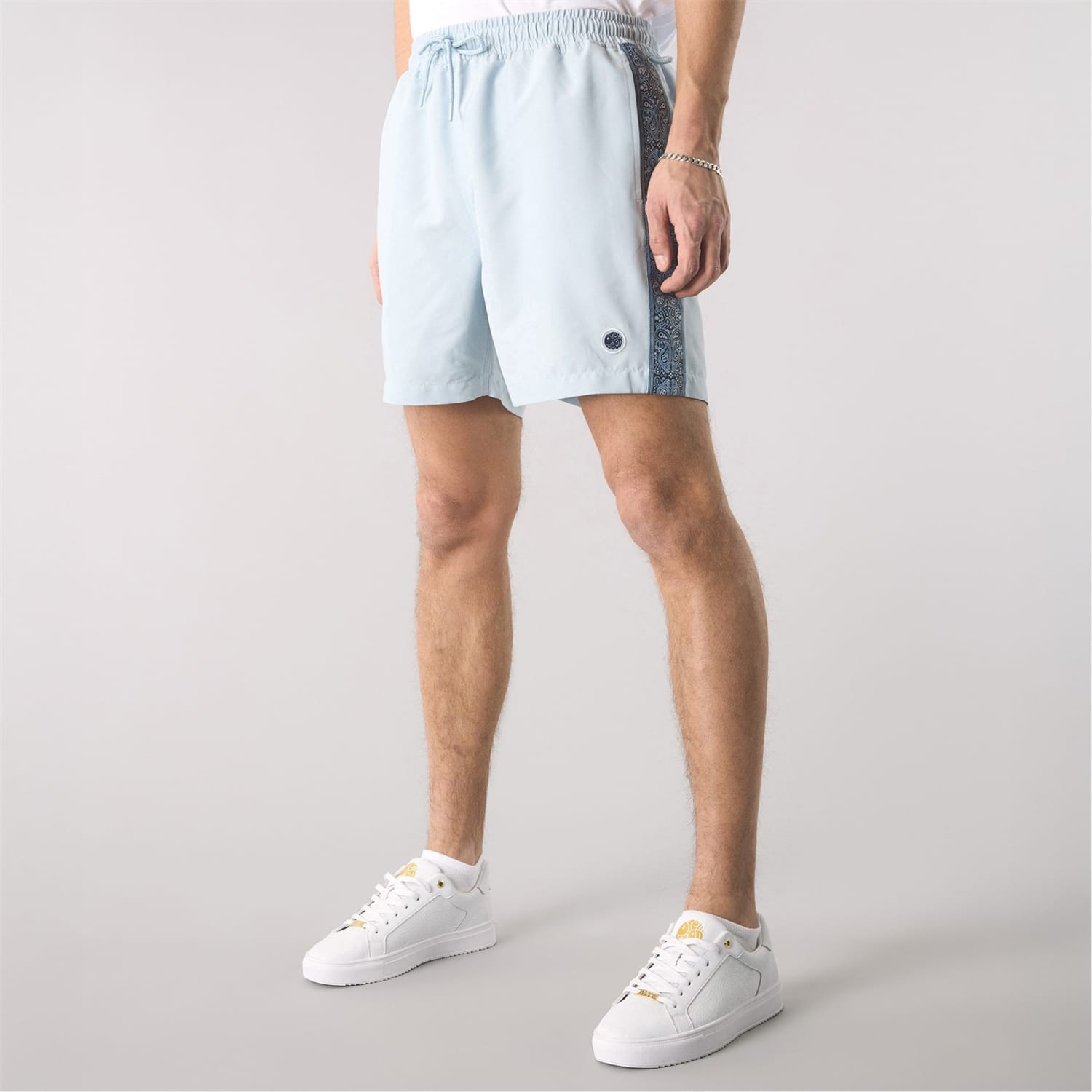 Dive into style with Pretty Green swimwear. These swim bottoms feature a distinctive paisley pattern, perfect for swimming activities. The drawstring closure ensures a secure fit, while the logo embellishment adds a touch of brand identity. Ideal for those seeking a blend of fashion and function in their swimwear. -