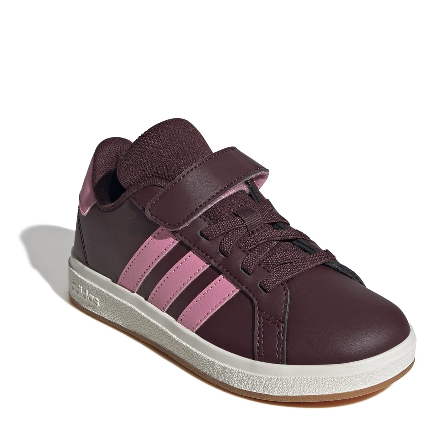 These adidas Grand Court Trainers are perfect for your little one casual looks. Whilst crafted with a cushioned insole and padded ankle collar for enhanced comfort, these trainers boast a textured rubber outsole which provides great traction and a hook-and-loop tape fastening allows for added security. With adidas branding throughout, the iconic three stripe branding completes the classic and stylish look. -