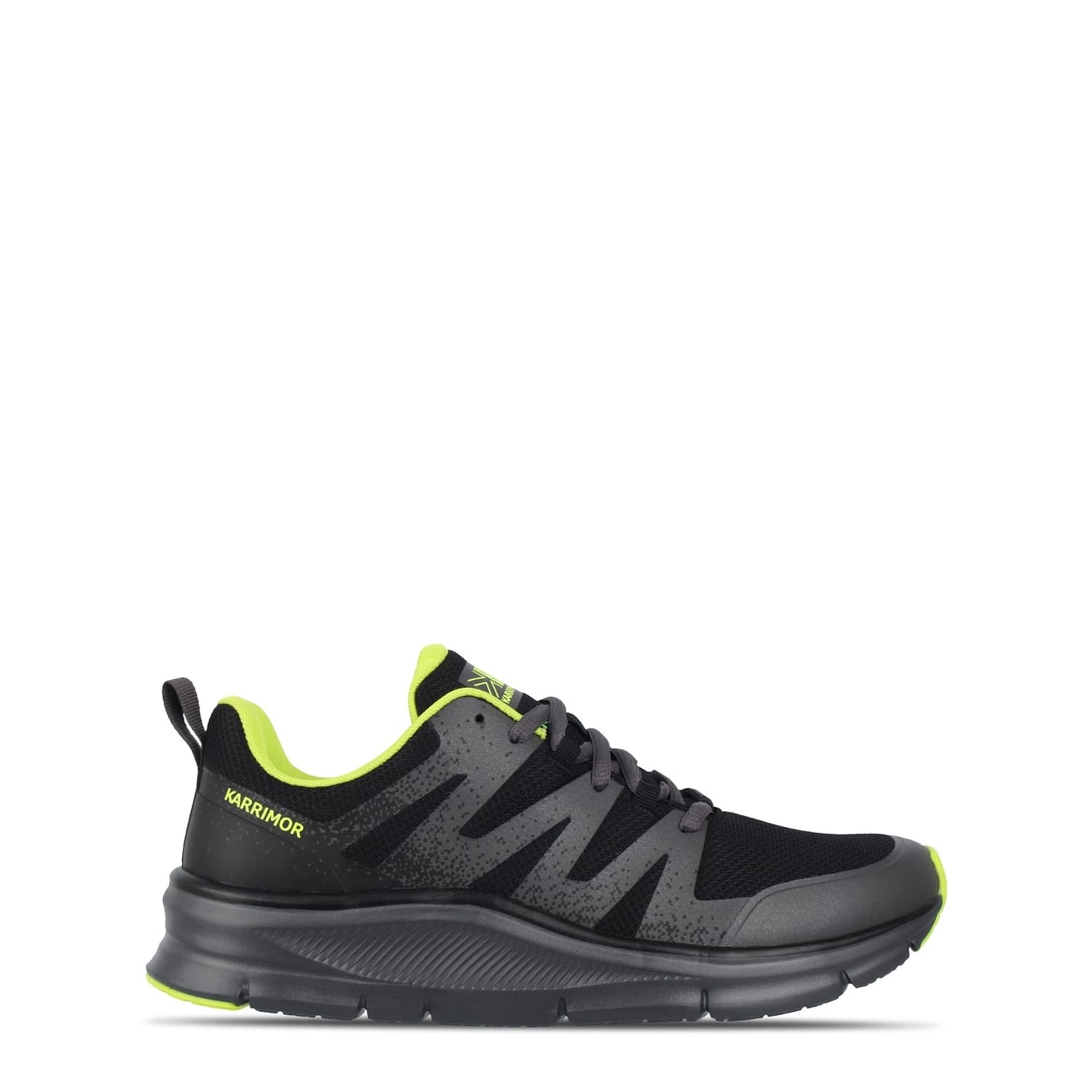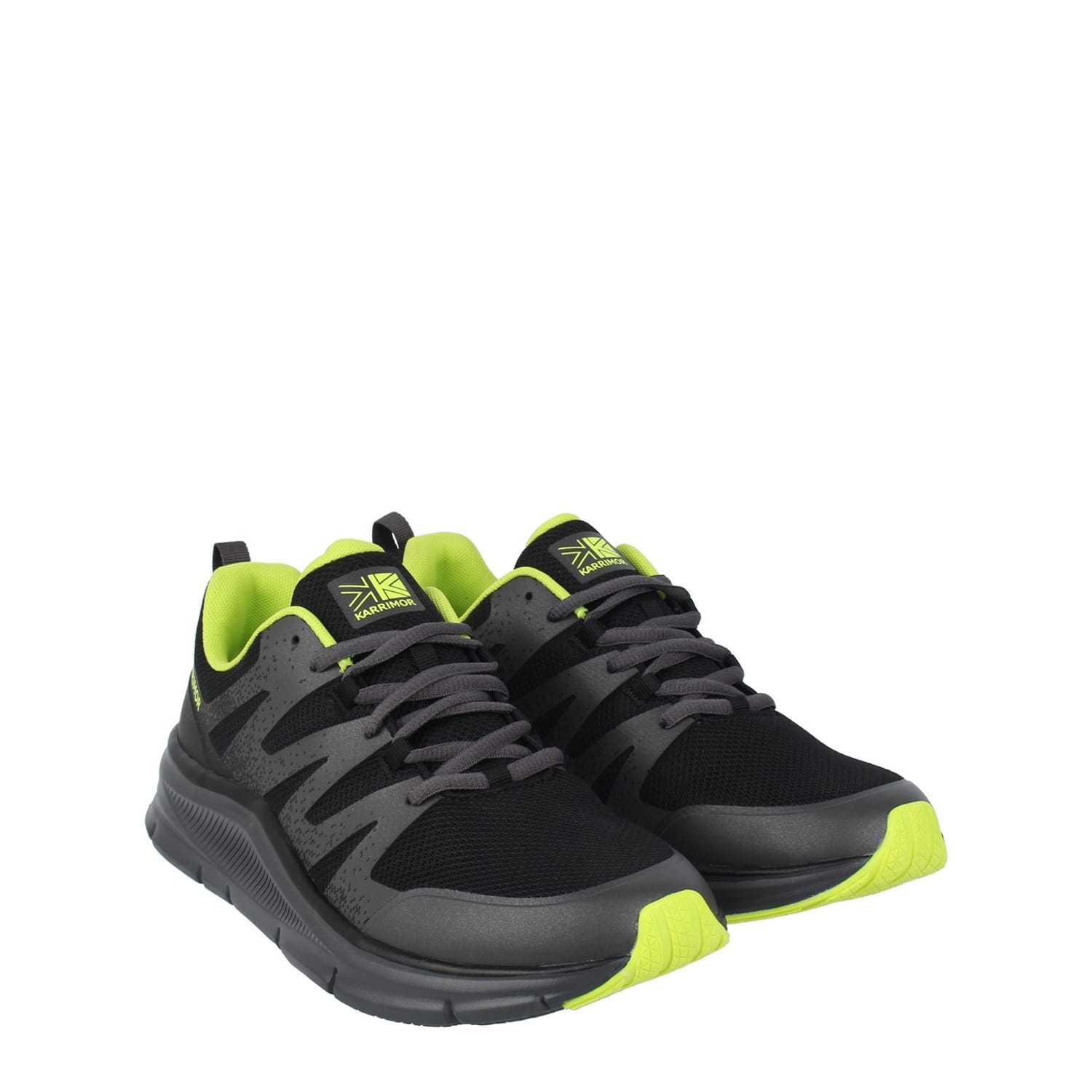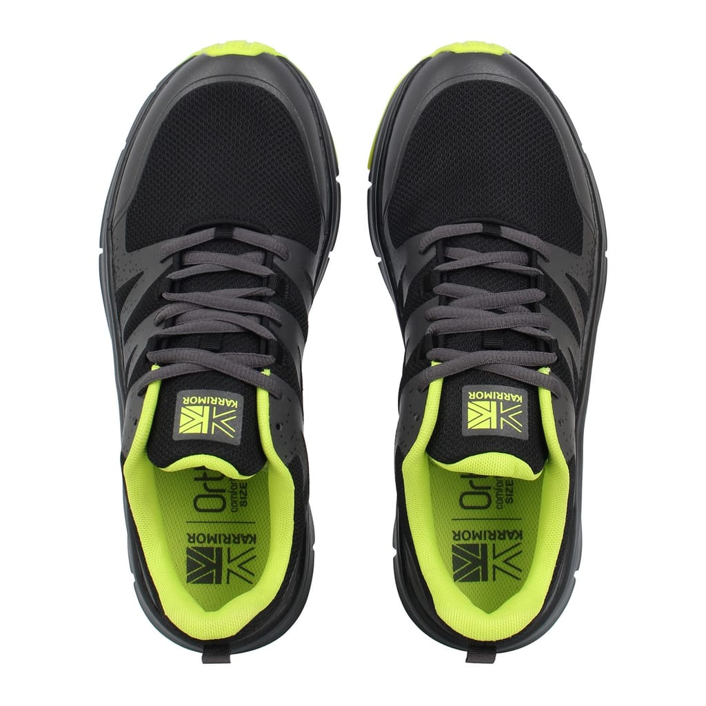 The Karrimor Duma running shoes are the ideal choice for those beginning their running journey. This entry-level running shoe features a low-profile ankle for added comfort, a heel pull tab for easy on and off, and a secure lace fastening for a personalized fit. The upper is constructed with a combination of hotmelt and mesh materials for breathability and durability. Inside, the Ortholite insole provides extra cushioning and support. The phylon midsole offers lightweight cushioning, while the rubber pods on the outsole enhance grip and stability for a smooth running experience. -