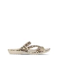 Slip-on sandal with a simple and ergonomic design. The sandal features a dual-strap upper with a sleek, curved structure that provides a secure fit. The synthetic sole is made from a lightweight and durable material. This type of sole provides cushioning and flexibility. The overall look is minimalistic, making it versatile for everyday use. -