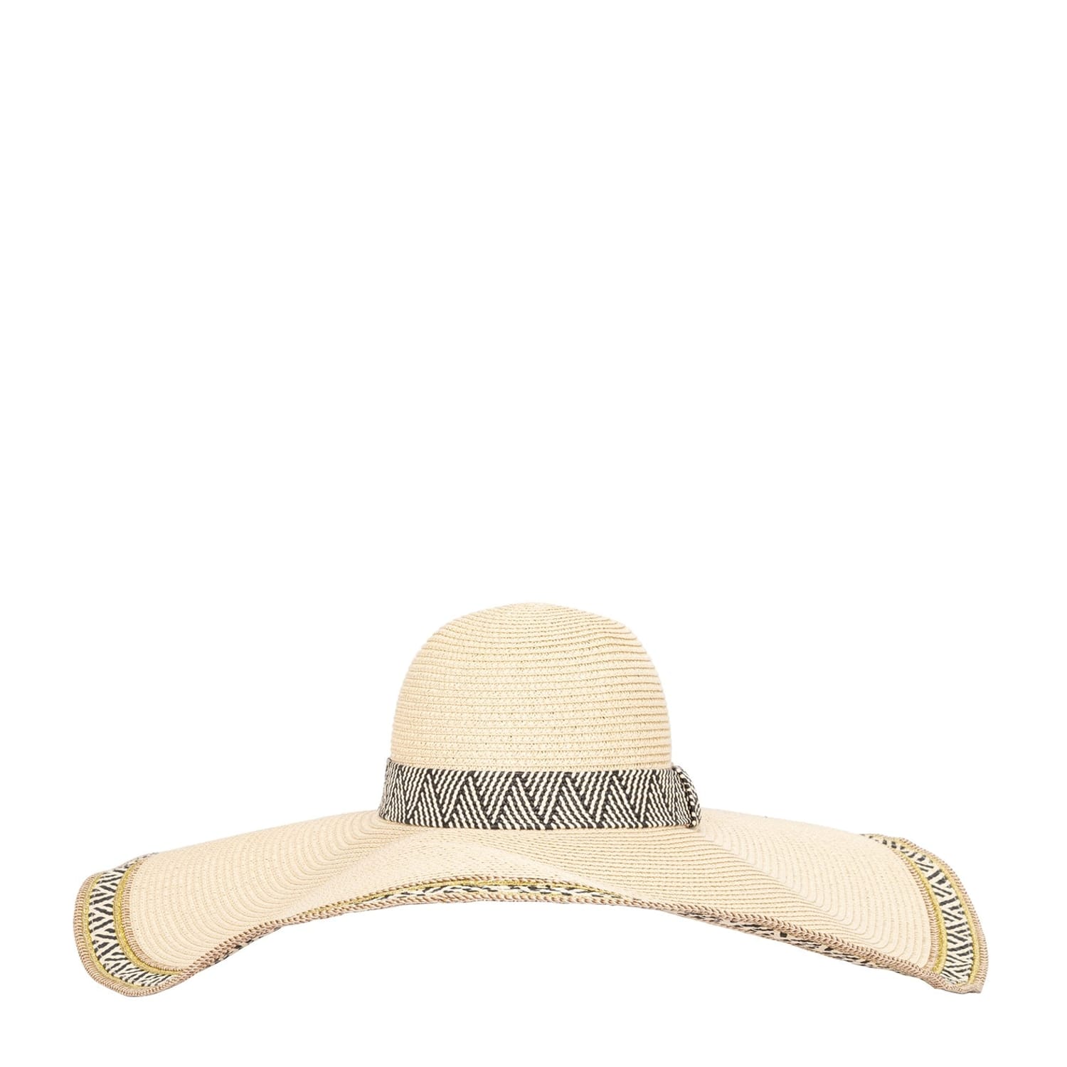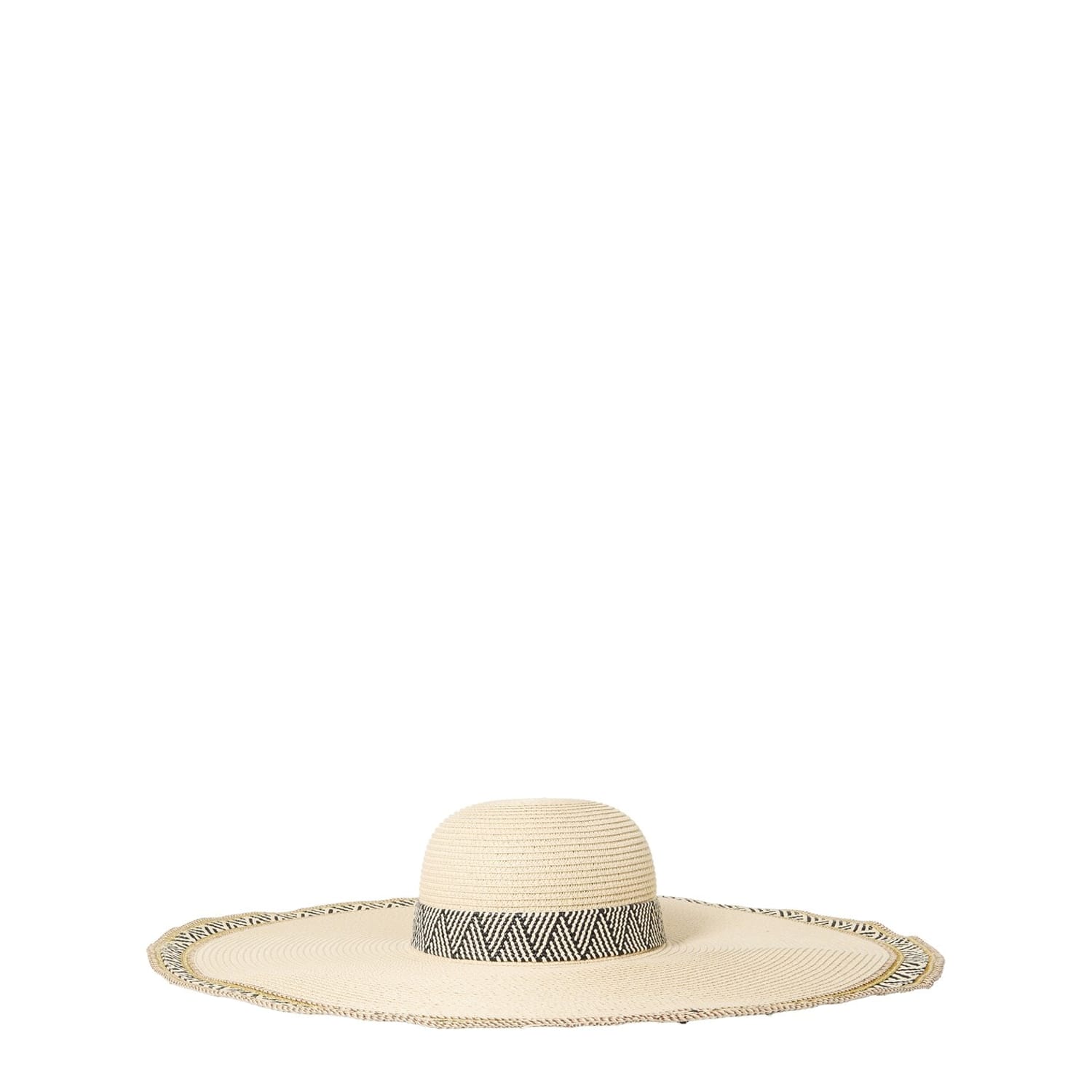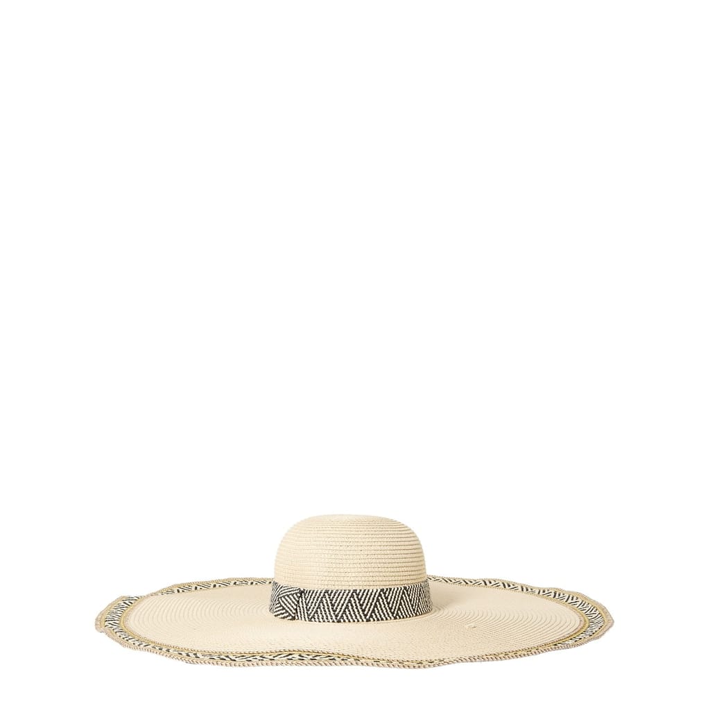 Elevate your style with Biba's floppy hat, featuring a chic chevron pattern. This elegant hat is adorned with a tasteful ribbon, adding a touch of sophistication to any ensemble. Perfect for those seeking a blend of fashion and function, this hat offers both sun protection and a stylish statement. -