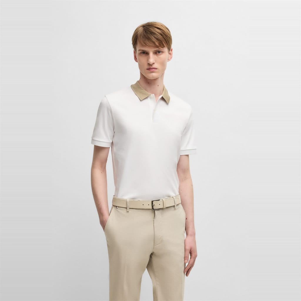 This Boss top is a casual essential, featuring a solid pattern and a polo collar. Designed with short sleeves and a regular fit, it offers comfort and style. The button closure adds a classic touch, while the logo embellishment subtly showcases the brand's identity. -