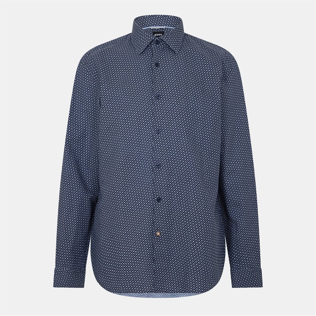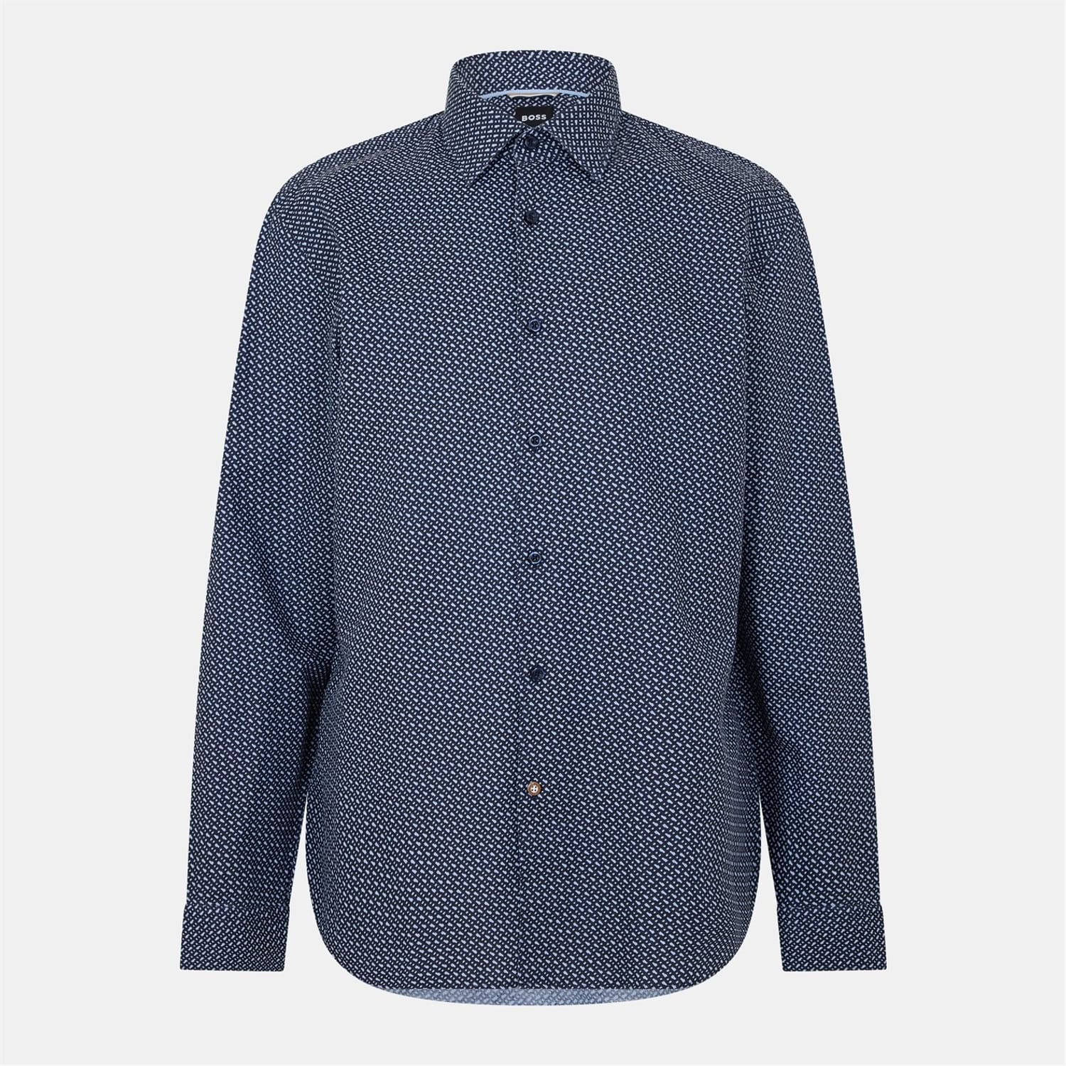 This Boss top is a perfect addition to your formal collection. Featuring a geometric pattern, it comes with long sleeves and a regular fit for a comfortable yet stylish look. The shirt sleeve design is complemented by a point collar and barrel cuffs. A button closure adds a classic touch, while the logo embellishment subtly showcases the brand's identity. -